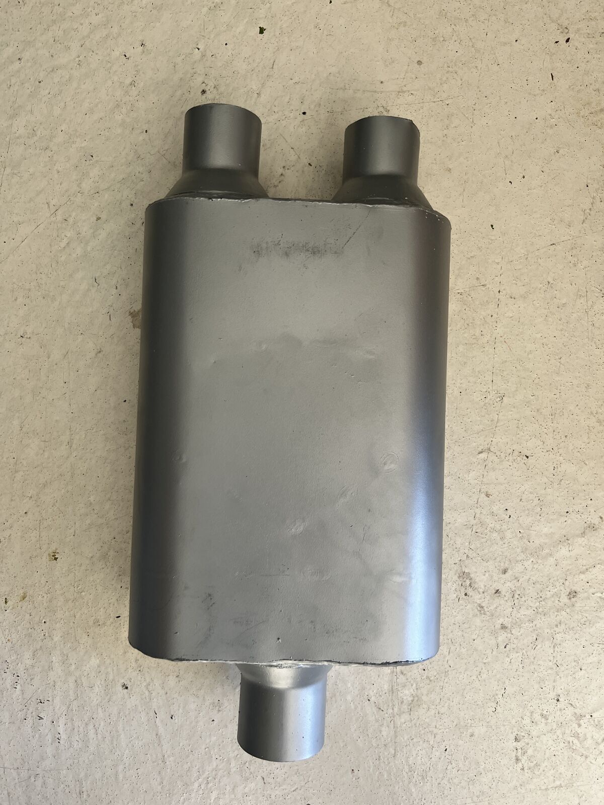 ZellePerformance Muffler - 2 1/2 Inlet, Dual / Outlet 2 1/4, Body 9x15 inches