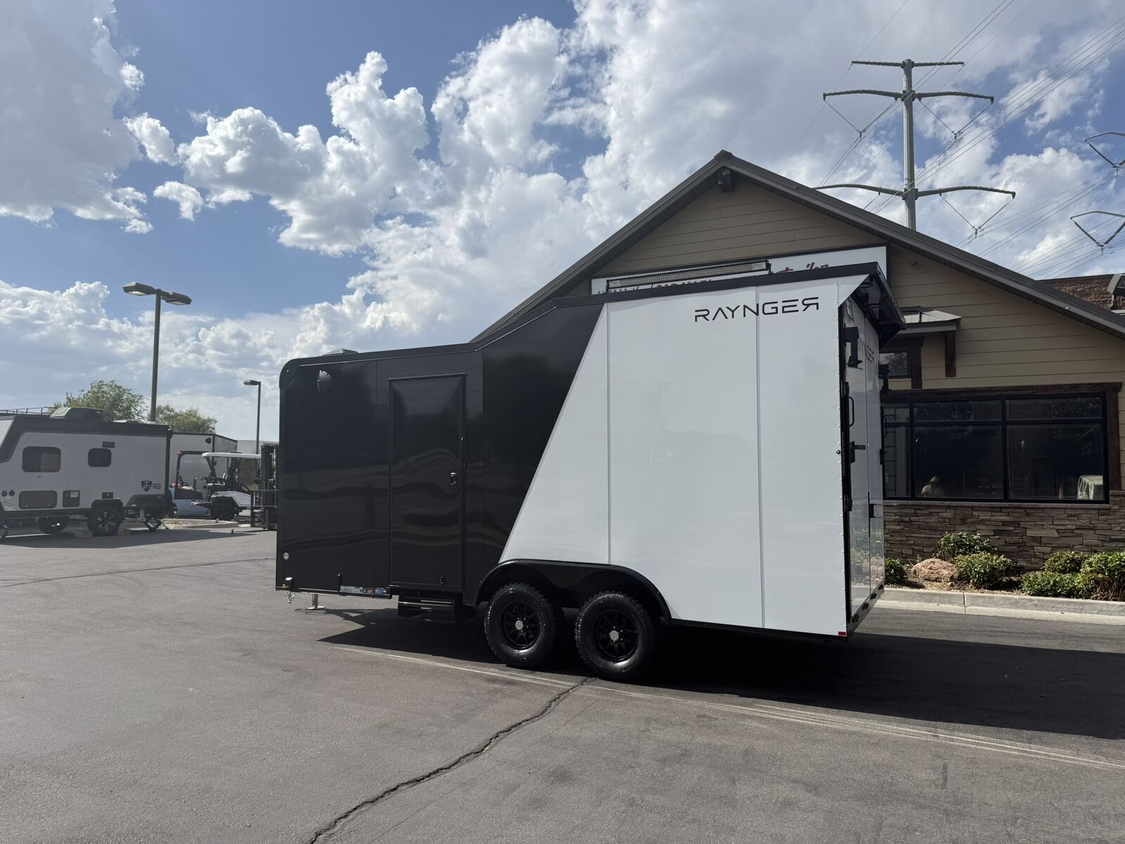 $255 A MONTH WITH ZERO DOWN WITH OUR SPECIAL LOCAL CREDIT UNION PARTNER!!! NO PRE-PAYMENT PENALTIES!!! 19 INCH GROUND CLEARANCE!!! OFF ROAD TIRES!!! NEW OFF ROAD TOY HAULER MODEL!!! GO WHERE OTHERS ONLY DREAM!!! RAYNGER PREMIUM OFF ROAD TOY HAULER CAMPER!!! DO YOU WANT A BATHROOM/SHOWER/KITHCHEN AREA? ASK SALES STAFF FOR PRICING!!! FULLY INSULATED!!! HEATING AND A/C READY/FRAMED/STUBBED/WIRED!!! STOW AND GO QUEEN BED!!! 84 Inch Rear Entry Height!!! Power Fan Ventilated!!! Water Resistant Poly Bead Flooring (Same Used in Snowmobile Trailers) EXTRA TOUGH!!! Patio Conversion Jacks!!! 4 Foot LED Party Lights for night time fun!!! Marine Battery with Box. You HAVE to come see this BEAST in person, it will amaze you!!!