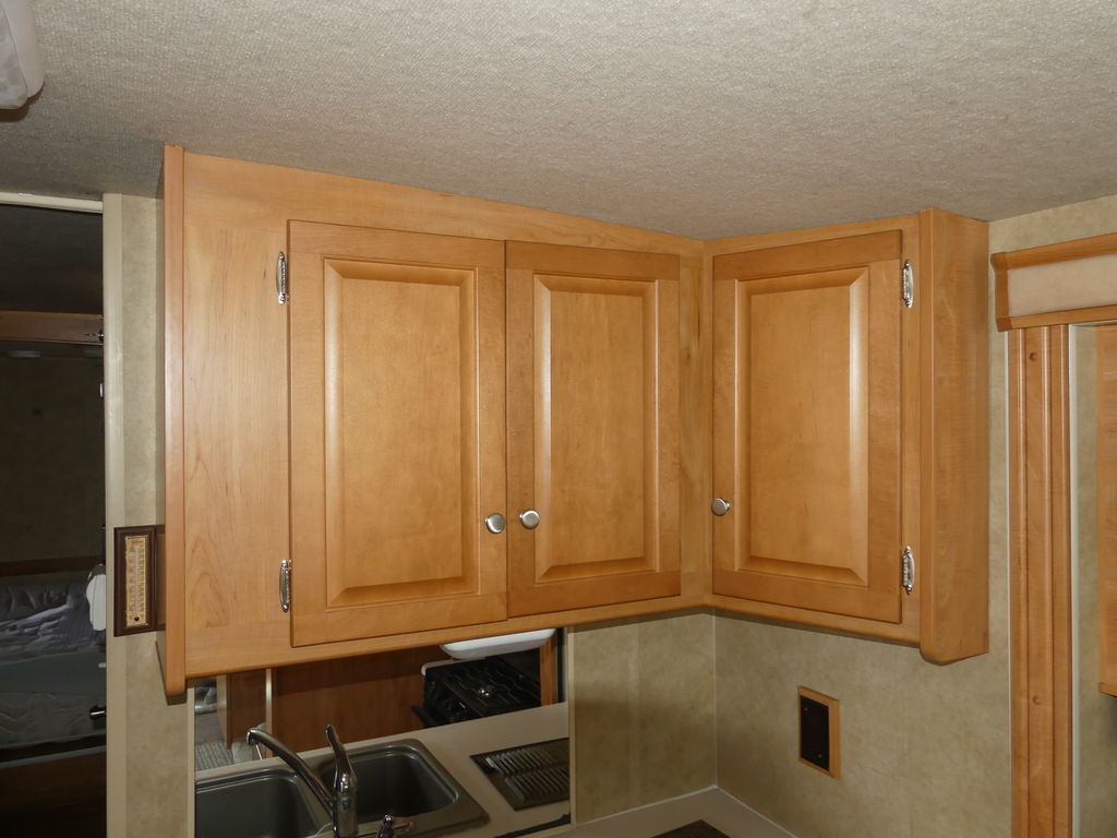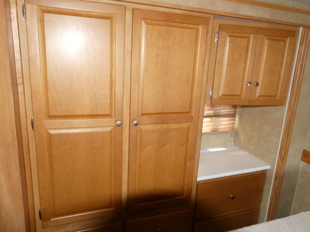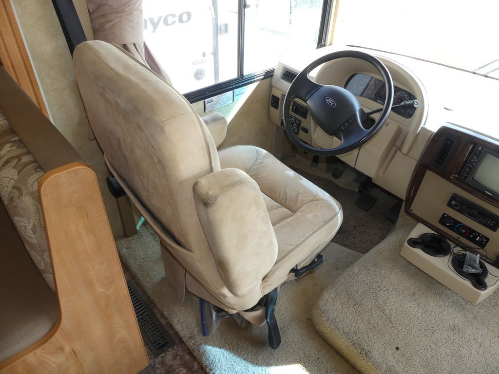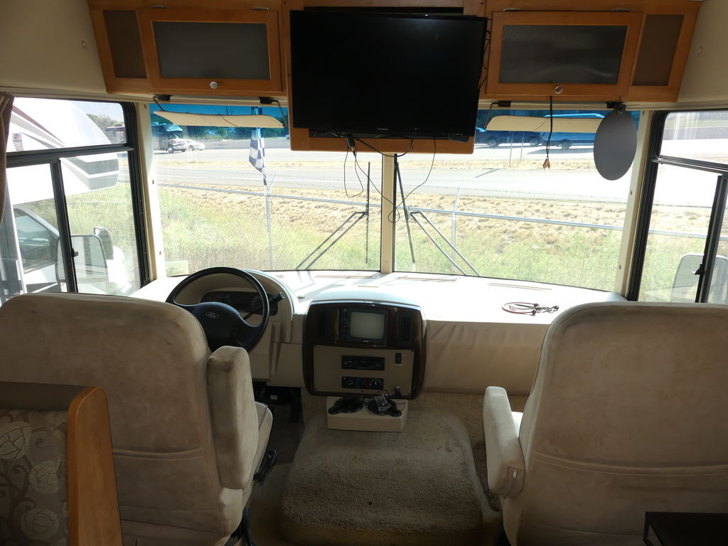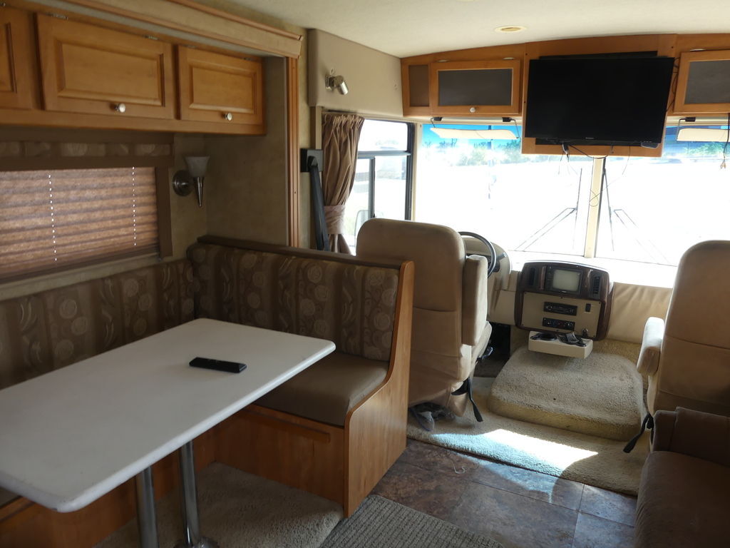 Nice Class A Motorhome queen bed in the back along with double bunks. Plenty of seating area with the large u-shaped dinette, couch, and chairs. The slide out makes the layout spacious, plenty of room to cook and entertain guest. For more information please call or text or come in and see it today!