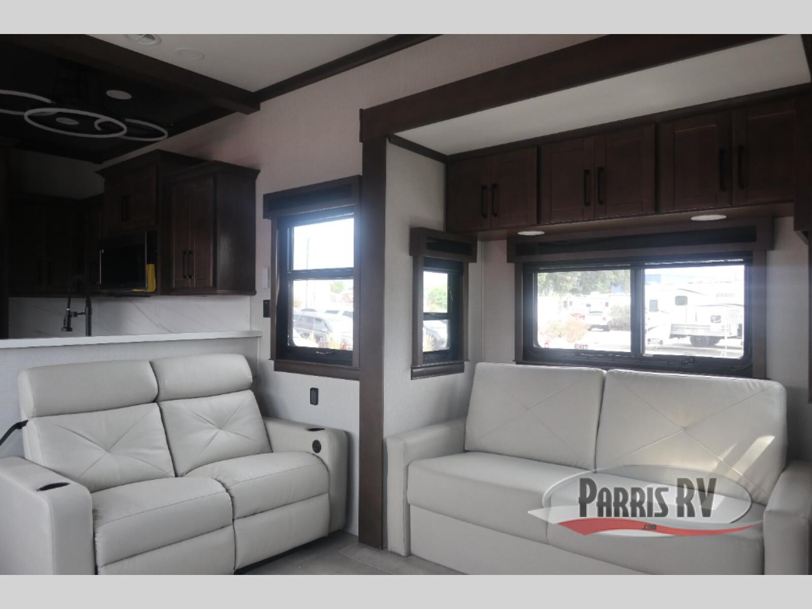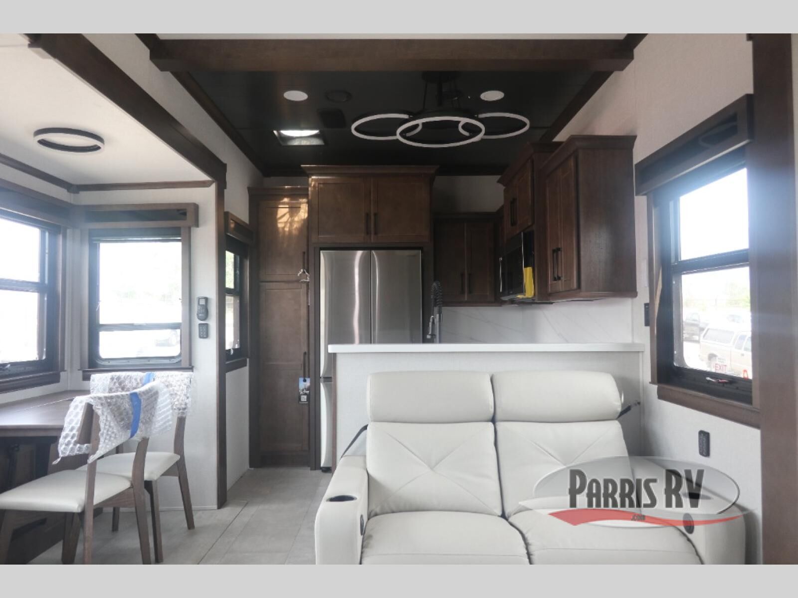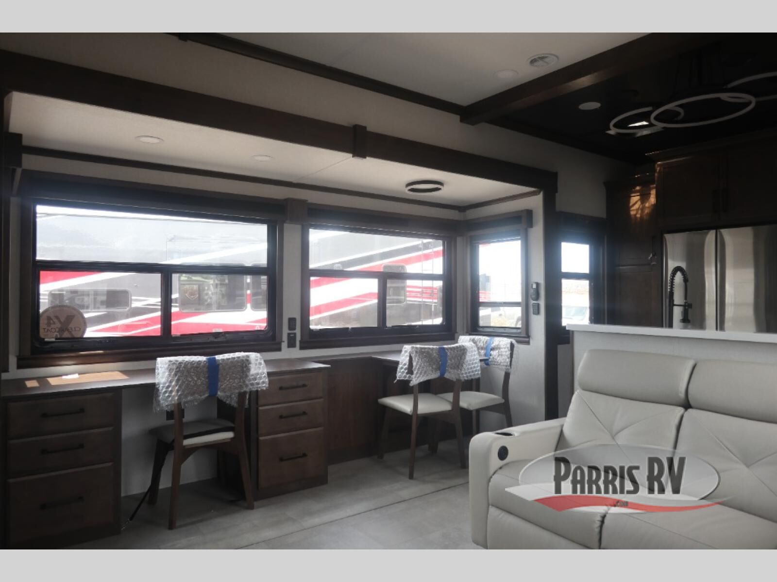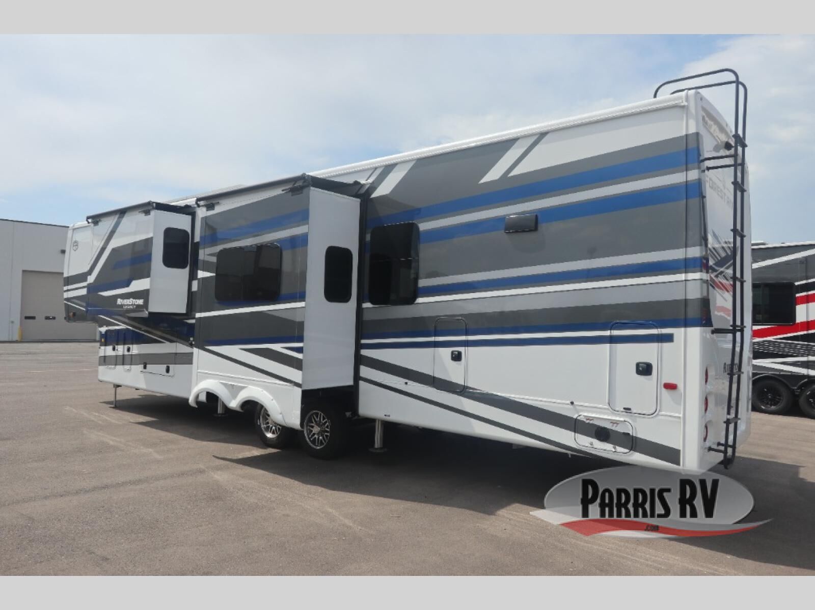 The Forest River RiverStone fifth wheels and toy haulers are luxurious units that have it all! You'll find an automatic six-point hydraulic level-up system to keep your unit in place, and there is preparation for a four-camera observation system. The TravlFi Journey XTR 4G/LTE router and WiFi extender will help you stay connected to the outside world, and you'll never have to overpack again since the Splendid "Astral" stackable washer and dryer will let you clean the small amount of clothes you've brought with you. Another high luxury is the Fischer Paykal dishwasher which will allow you to spend more time enjoying your camp life and less time cleaning up. Each unit is built with an LCI Road Armour suspension system, dual-pane frameless windows, a full docking station, a 200W solar panel, and a BMPro touch control system.