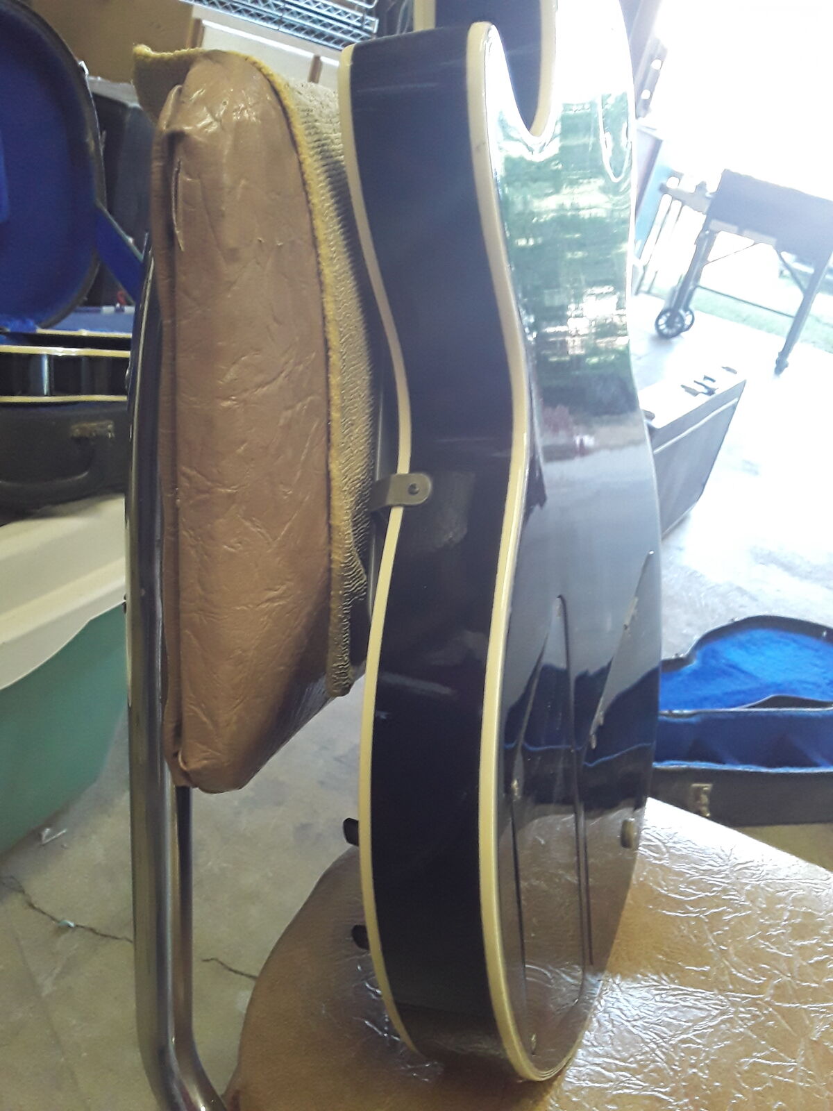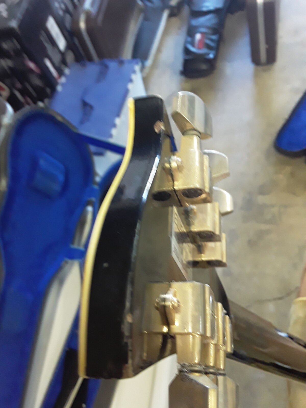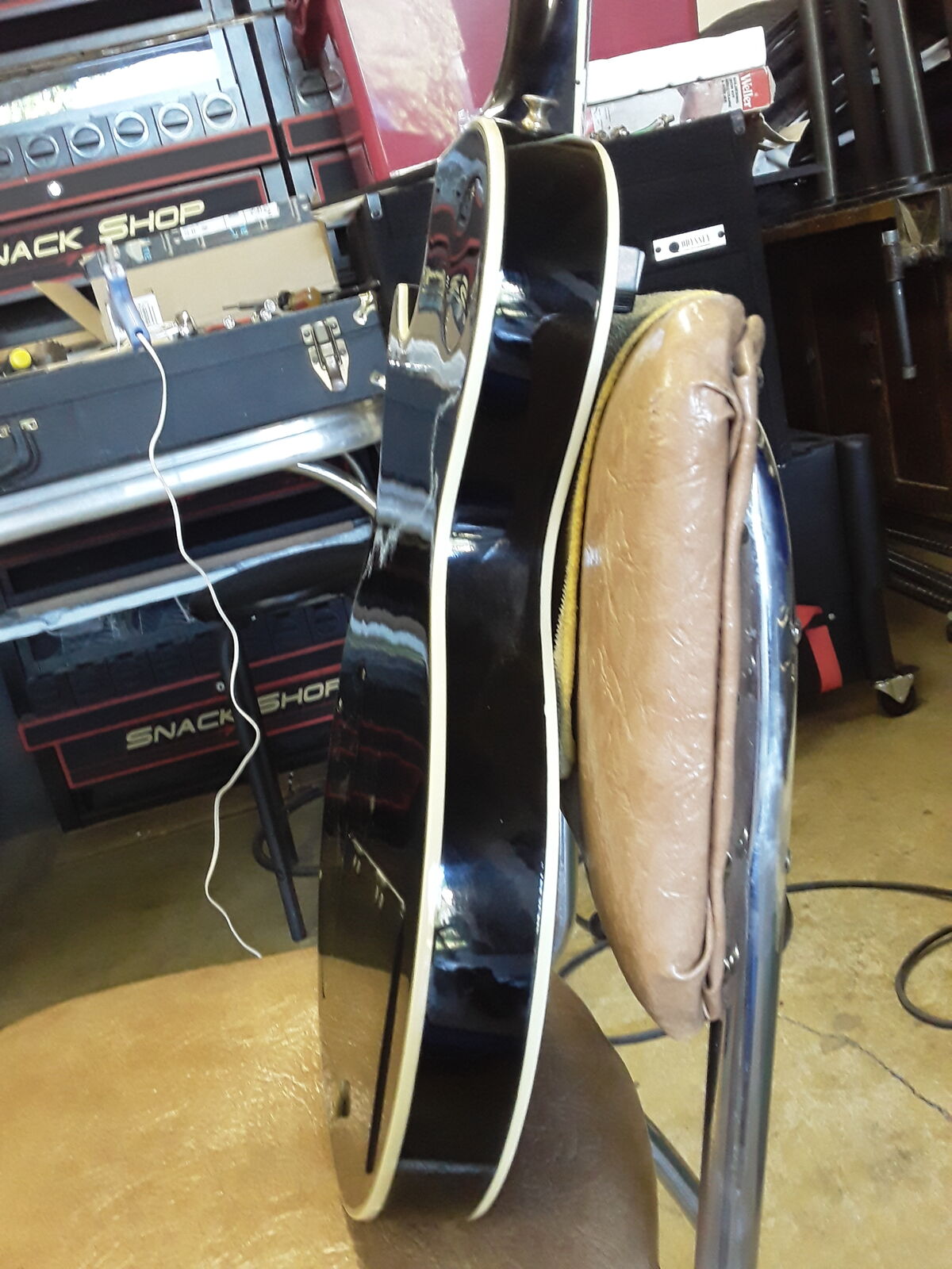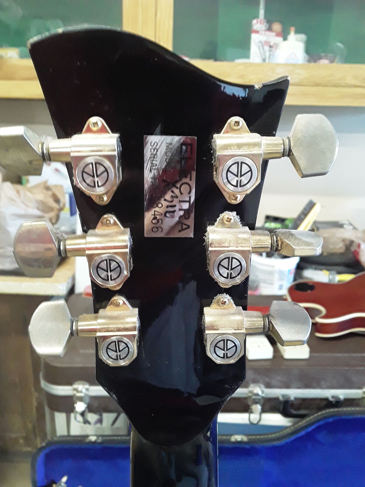 Set neck LP style, black with black pickguard, gold hardware, two Magnaflux pickups (Maxon-same company as Ibanez Tube Screamer). MPC onboard electronics. Brass nut which adds a little brightness for humbucker pickups. Wave head stock so post lawsuit era after 75.