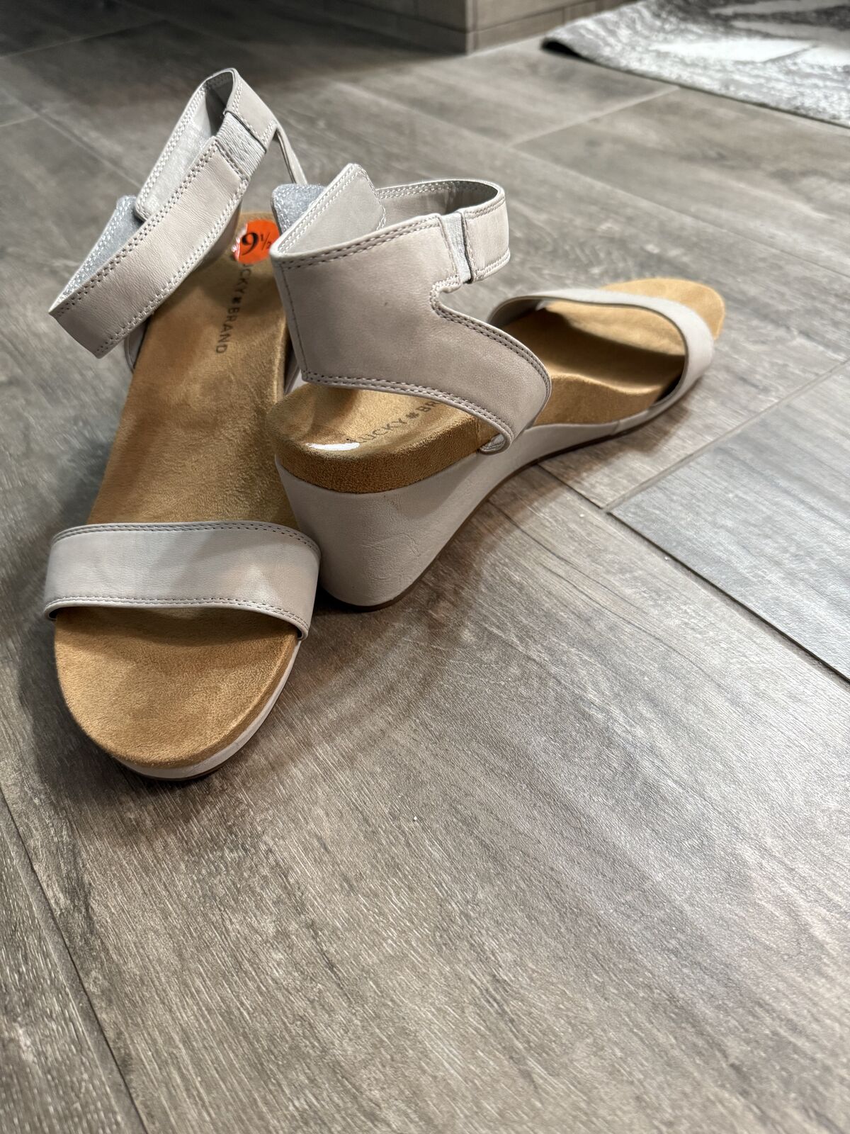 VenmoBeautiful women’s size 9 1/2 Lucky Brand Sandals. They sadly were just too big for my daughter. So cute and love the neutral colors that will go with anything. Cash or Venmo.