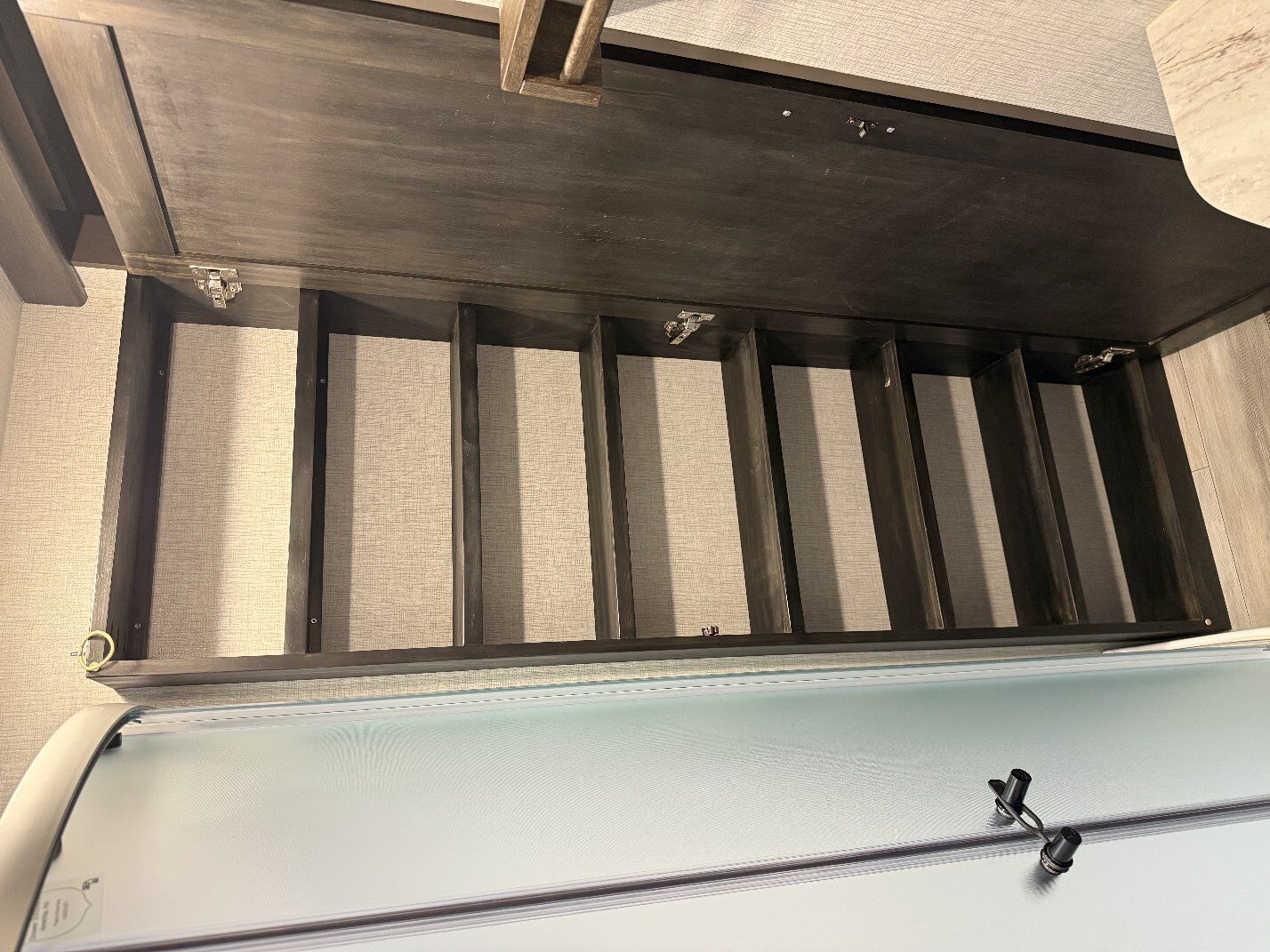 -Custom floor to ceiling bathroom cabinet.\