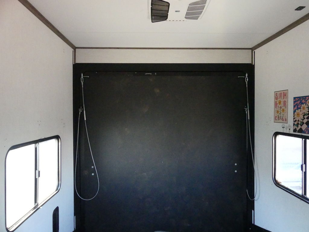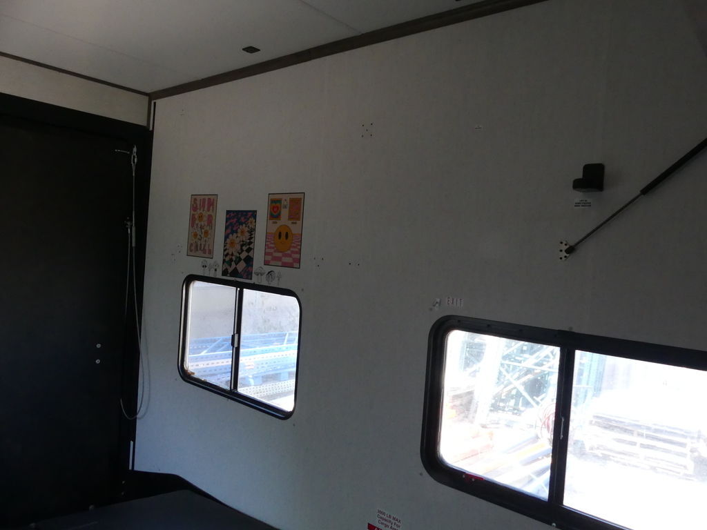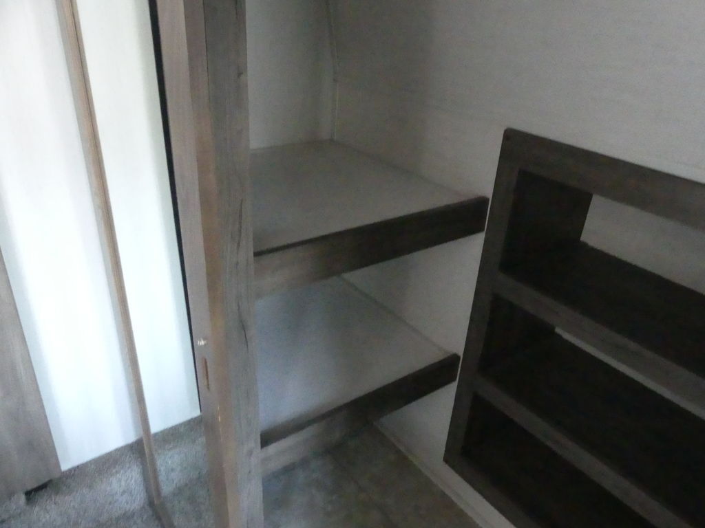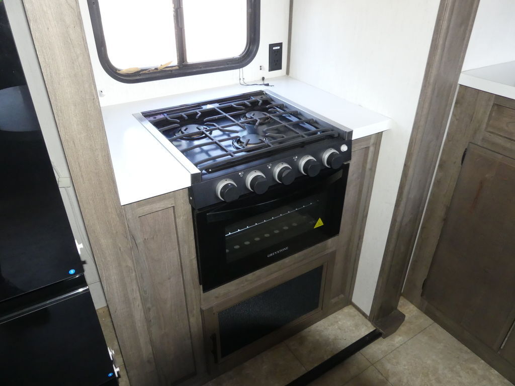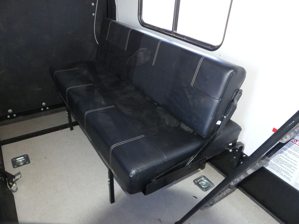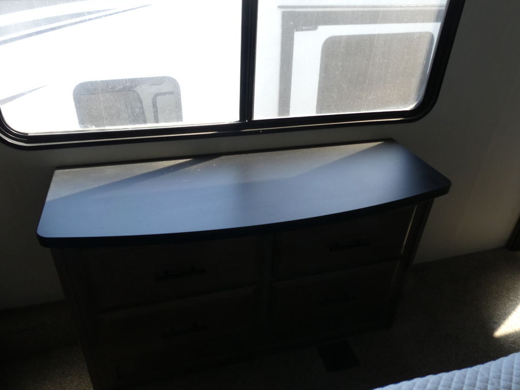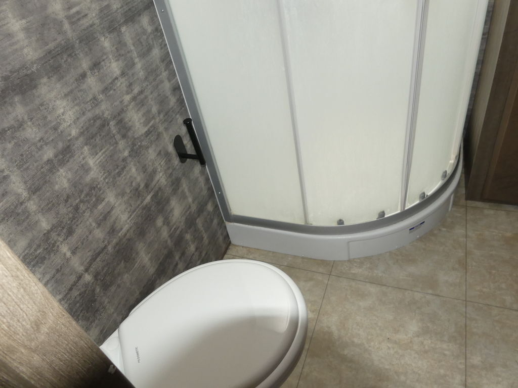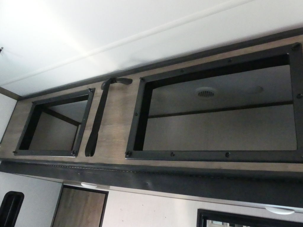 Luxury abounds in this stunning toy hauler! The kitchen features residential appliances, solid surface counter tops, stainless steel sink with pull-down sprayer, and ample storage. The high ceilings and extra tall main slideout really expand the already large space. The bathroom features a large glass shower, porcelain bowl foot flush toilet and linen closet. The bedroom features a power adjustable king bed, large dresser, front wardrobe, dedicated air conditioning and plenty of storage.