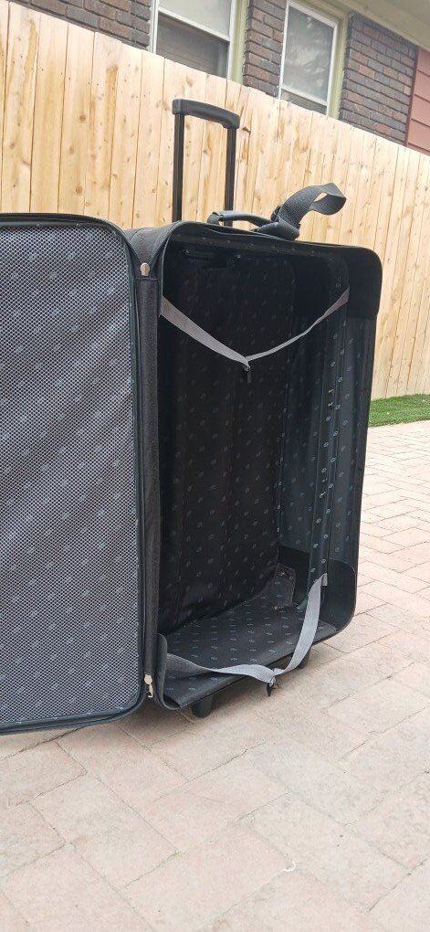 Large, in great condition, on wheels, all zippers and latches work. Clean and in very good condition. 31 tall, 20 wide, 10 deep