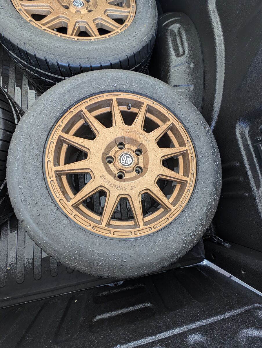 VenmoGood looking set of wheels and tires. Wheels are LP Aventure LP1-18 18x8 with 5x114.3 bolt pattern. (https://www.tirerack.com/wheels/WheelCloseUpServlet?target=runWheelSearch&initialPartNumber=LP11880511435BZ&wheelMake=LP%20Aventure&wheelModel=LP1-18&wheelFinish=Bronze&showRear=no&autoMake=Subaru&autoModel=Outback&autoYear=2020&autoModClar=Touring+XT)