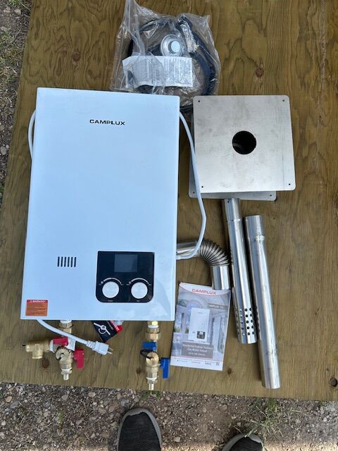 Never used - Ondemand propane water heater everything is there to hook up except the propane bottle. Over 400.00 dollars paid. Model # 2303CM264LP0016