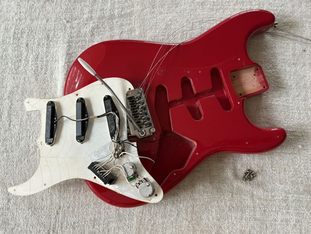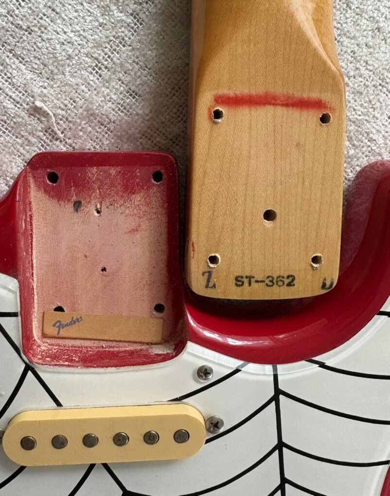Missing back plate and string lock nuts at headstock; I’m sure both items can be found easily enough if desired.