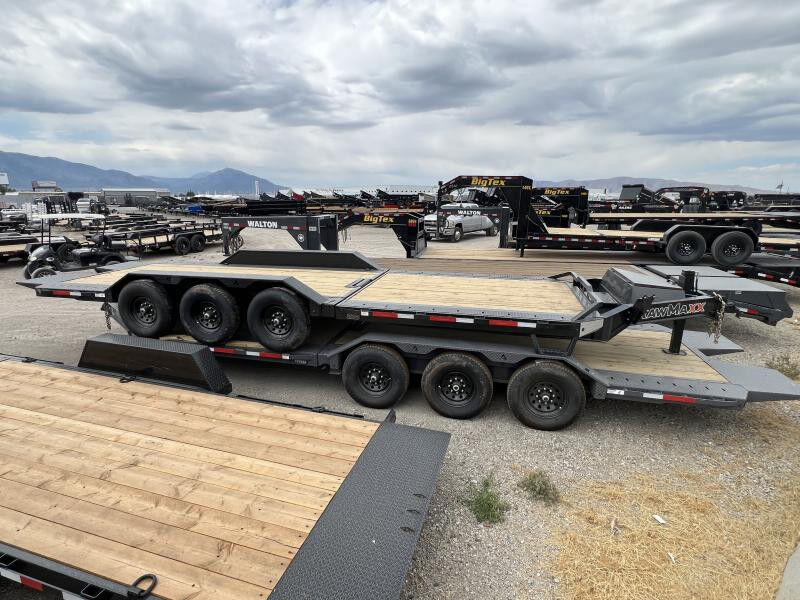 Stock #: RM1565 Trailer Specs: Color: Black Powdercoat Overall: Length: 30'8" Width: 8'6" Interior/Bed: Length: 26' Width: 8'6" Weight: 5,930 lbs. | GVWR: 21,000 lbs. | Payload: 9,800 lbs. Axle(s): 7,000 lb. Dexter Torsion Braked Axle w/ EZ Lube Hubs Tire/Wheel: ST235/80R16 | Load Range E Coupler: Type: Bumper Pull | Size 2 5/16" | 7-Way 12V Connector 6"x10lb I-Beam Main Frame | 3" Channel Cross-Members | 16" OC 5 Year Dexter Axle Warranty 3 Year Structural Warranty 1 Year Limited Warranty Trailer Includes Following Options: Front Hydraulic Jack Standard Features: Front Toolbox Recessed Spare Tire Compartment Weld-On & Flush Mount D-Rings Spring Loaded Automatic Deck Latching System 3/16" Treadplate Drive Over Fenders 2" Treated Wood Deck Adjustable Coupler All-Weather Wiring Harness 10K Drop Leg Jack Safety Chains Breakaway System w/ Charger LED DOT Approved Lights Powdercoated WASATCH TRAILER SALES - LARGEST TRAILER SELECTION IN UTAH Springville: (801) 528-1581 | 1180 S 2000 W, Springville UT, 84663 View More Inventory: www.wasatchtrailer.com"