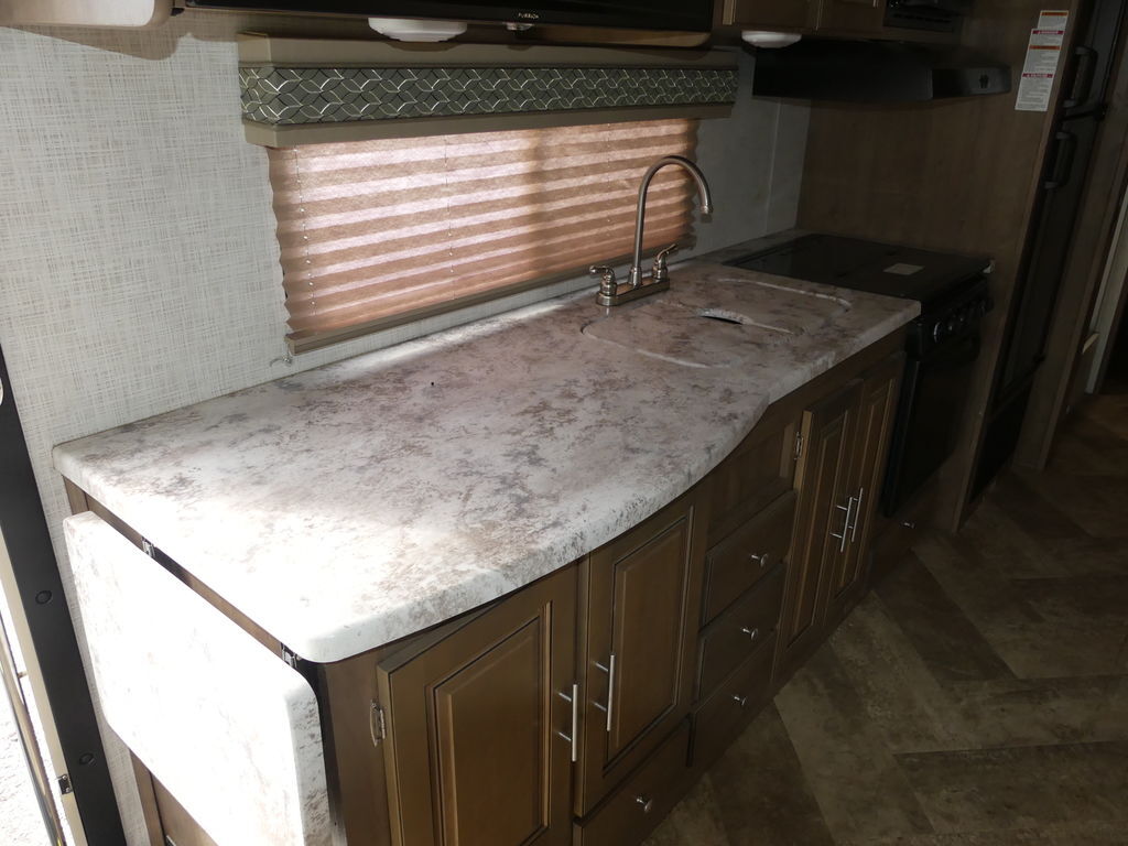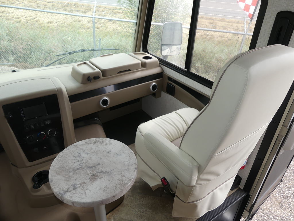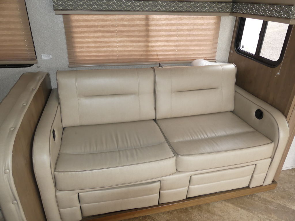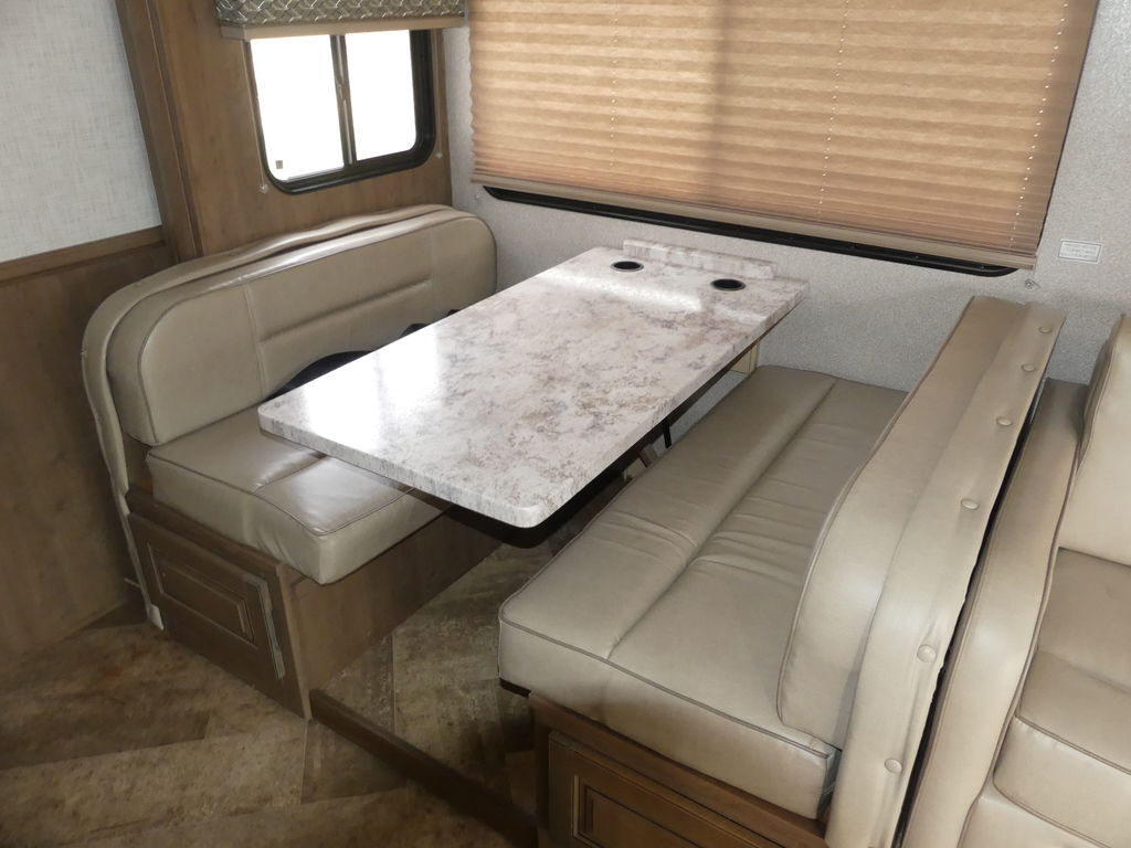 Standard appointments include automatic hydraulic leveling jacks, color side and rear cameras, bedroom and main living LED TVs, custom countertops and Pioneer dash entertainment system with AM/FM/DVD/Bluetooth and USB. Spacious galleys include dream dinettes that seat friends and family in total comfort.