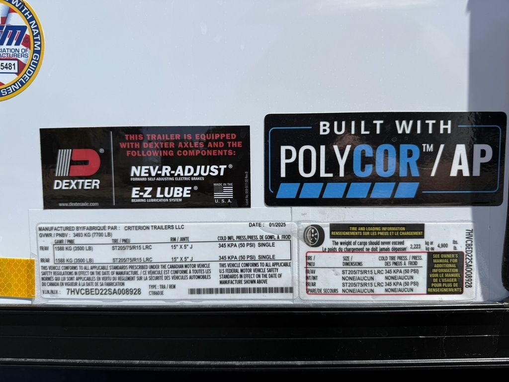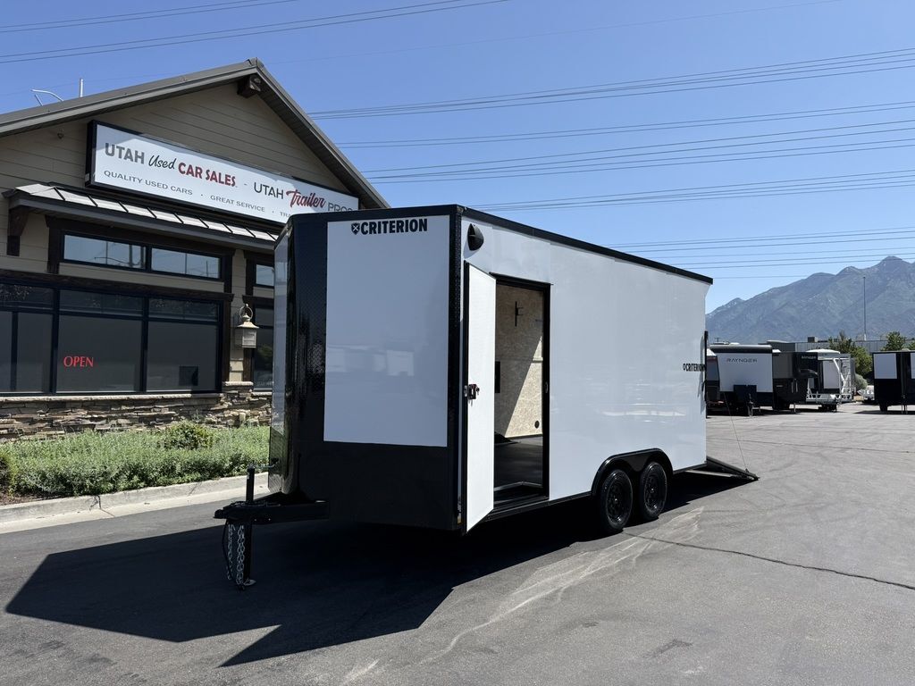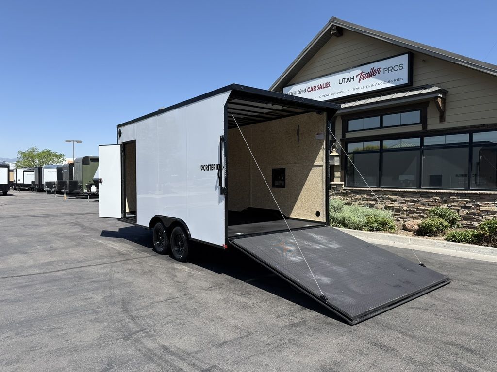 $131 A MONTH WITH ZERO DOWN WITH OUR LOCAL CREDIT UNION PARTNER!!! EASY IN HOUSE APPROVALS WITH NO PRE PAYMENT PENALTIES!!! CRITERION UTV Pkg!!! 6 inches added height for an 87 Inch Rear Entry Height, and a 90-inch interior Height!!! Extra Tough Poly Bead Rubber Floor! Industry Leading .080 PolyCore Aluminum Exterior!!! Rear Spoiler with LED Load Lights! Roof Vent. 6x 5000# Heavy Duty Recessed and back plated D-Rings!!! Drivers Side Side Access Door! Fuel Pass Through Door! Criterion Trailers are Super Premium Steel Framed Trailers with a 3 Year Factory Warranty!!! Come take a look at Criterion to see unparalleled quality!!! 7SA008928