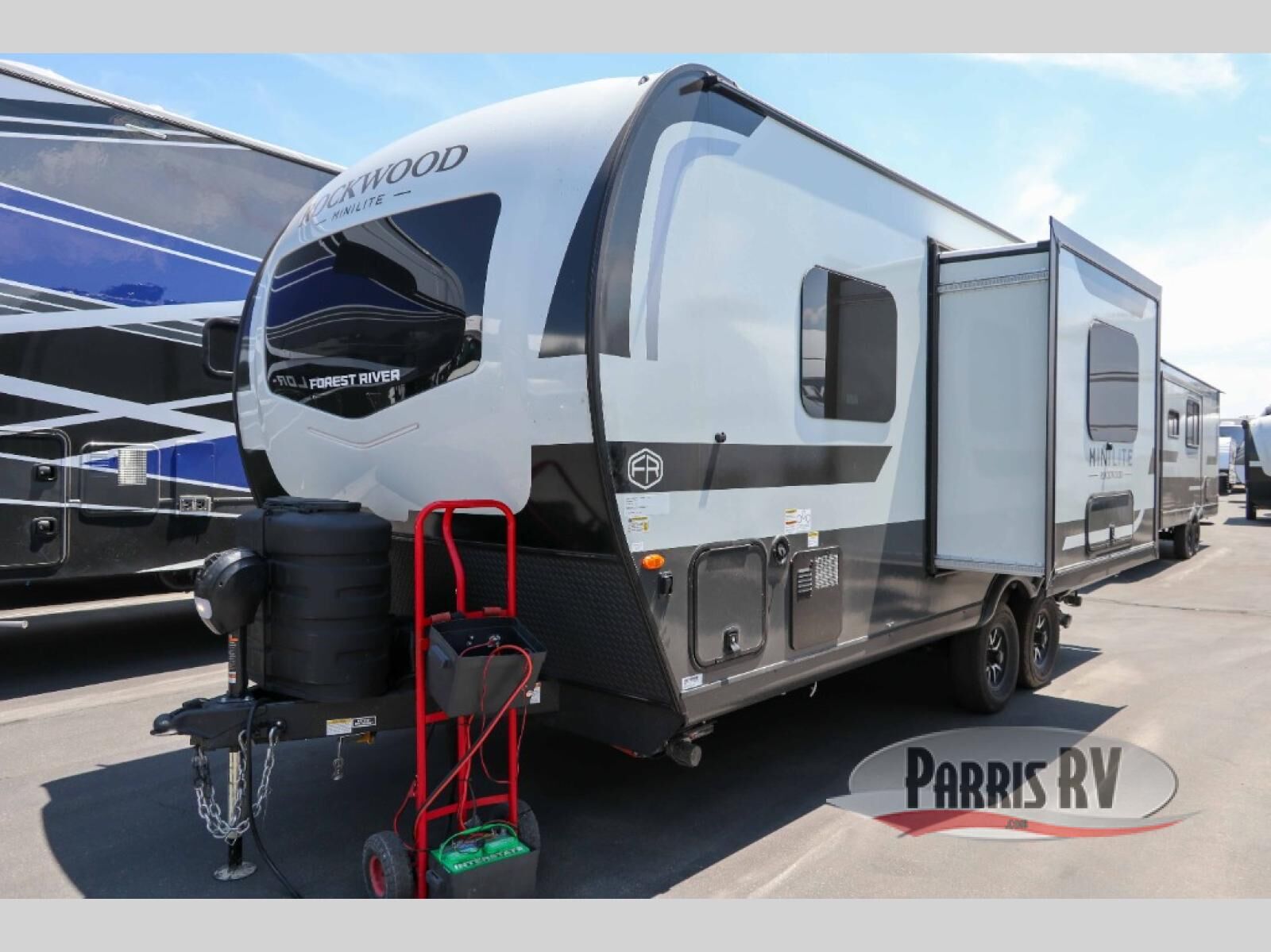 Each Rockwood Mini Lite travel trailer by Forest River is constructed with a fully laminated one-piece walkable roof, sleek frameless windows, and a six-sided full aluminum frame for strength and durability. The 12V thermostatically controlled heated tanks, plus radiant foil in the underbelly will allow you to camp well into the colder months, and the 200W roof solar panel will be perfect for a little off-gridding. Each model includes solid surface kitchen countertops, hidden hinge cabinet doors, roller shades, plus many more interior features. Having an AIR 360+ omnidirectional antenna with WiFi prep on board gives you the option to get some work done if it's needed, and the power tongue jack provides hassle-free set up, so you can enjoy more time relaxing!