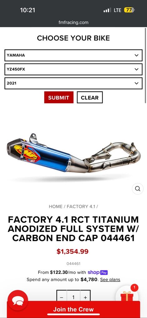 Aftermarket- Full Fmf 4.1 pipe system Rekluse clutch Acerbis hand guards Tusk folding clutch and brake levers Tusk shift lever Tusk brake lever Mouse tube in rear Brand new Seat cover Titanium foot pegs Also have extra oil filters and air filters