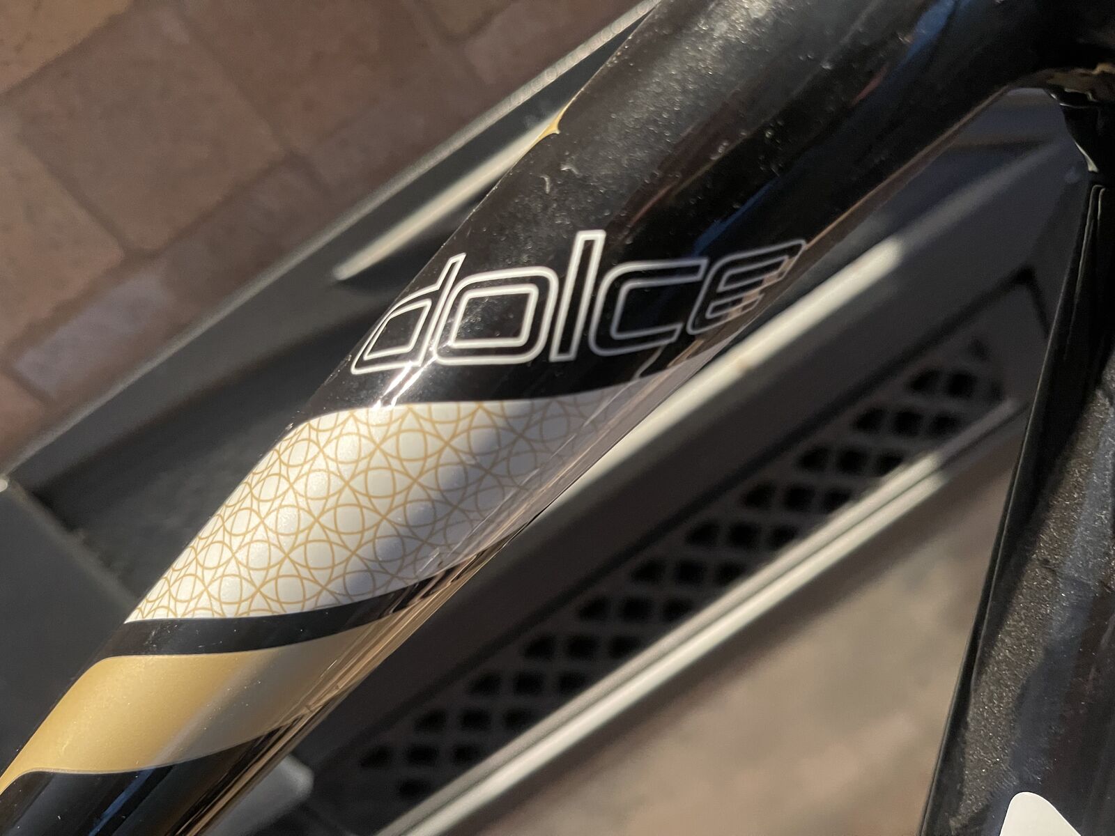 VenmoThis is a Specialized Dolce Elite 2013ish (not certain the exact year), Size, 51.5. Aluminum with carbon fork inserts for vibration dampening. Shimano Tiagra 2x10 crankset, Rim brakes (dual pivot caliper), Asix classic wheels (stock setup from specialized), drop bars with white tape and integrated shifters, Oura womens saddle. Endurance riding and fitness cycling, women-specific geometry; shorter tube, narrower handlebars and women tuned saddle. This bike has not ben ridden more than 10 times in aggregate. While it is older, it is in fantastic condition and is a great starter bike and a reasonable price