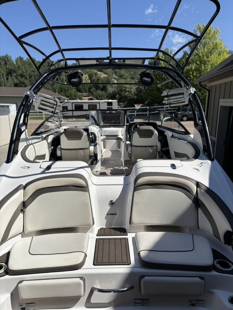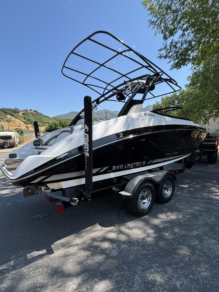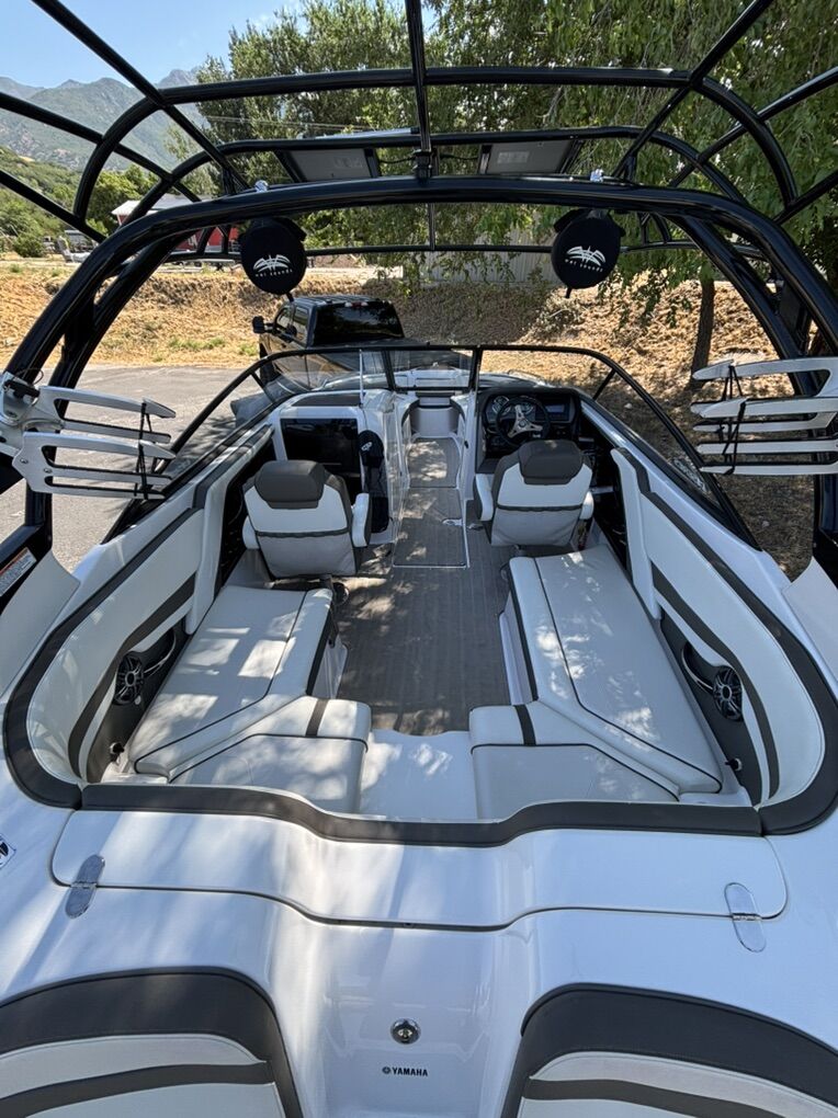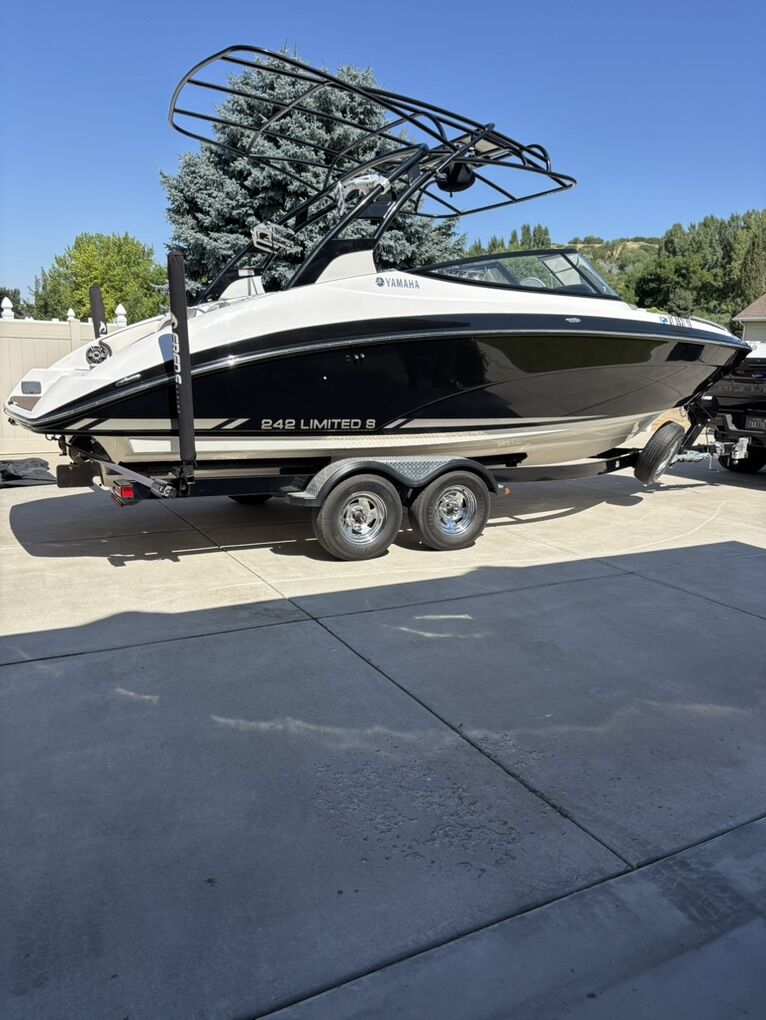 Very clean, well taken care of Yamaha jet drive boat. Has the duel jet drive engines. Super low hours, each engine has about 231.5 hours. No major wear and tear at all. Vinyl is in great condition, no tears or rips. Flooring is also in great condition. Exterior does have a few little flaws but nothing crazy, probably a 8 out of 10. Has newer batteries (2 years old), new cover (1 year old), new tires on the trailer including the spare (1 year old). The tires are a load range D, they are very good tires. Has the Wet Sound tower speakers along with upgraded interior speakers that are only 1 year old. I also have a custom storage cover for it as well. Has a big Bimini top that is in good condition and gives you tons of shade. Oil is changed and boat is winterized every year at Dicks Yamaha in Layton and this spring they replaced the spark plugs as well. This boat is ready to hit the water and runs amazing every time, it’s a very fun boat. I’ve never had any issues at all with this boat. I could also include some boating gear with it (ropes, surf boards, life jackets etc…) depending on purchase price.