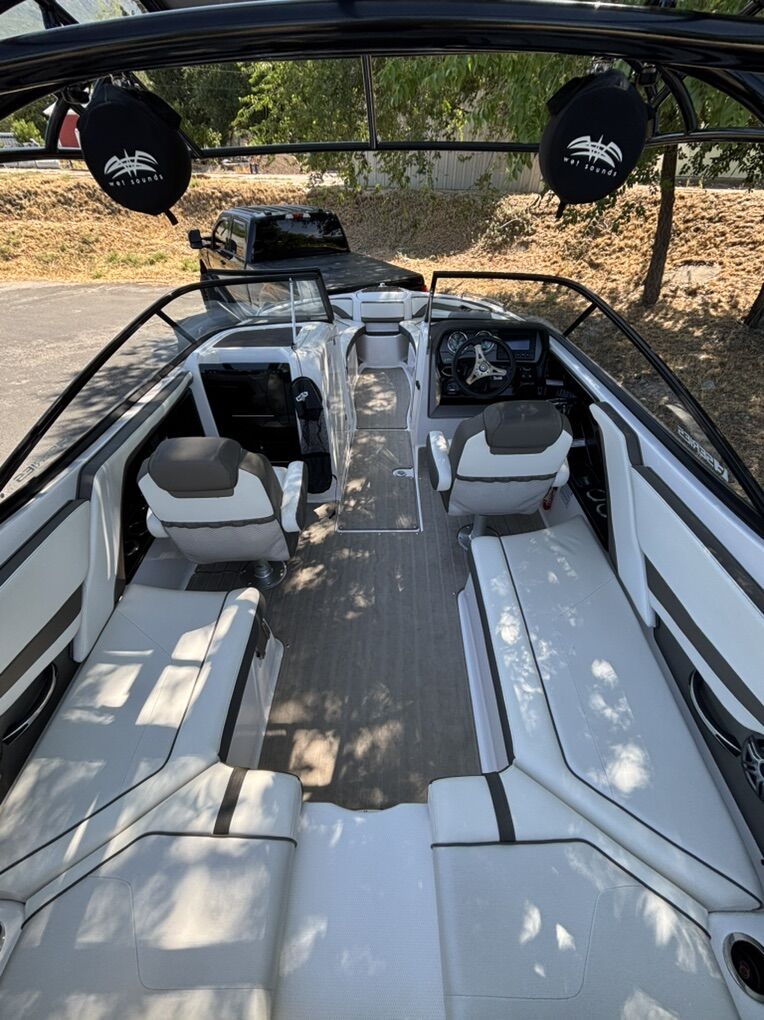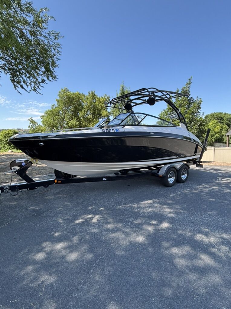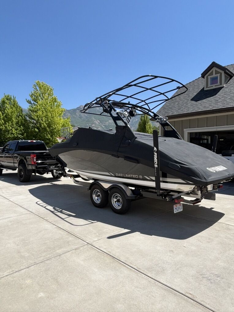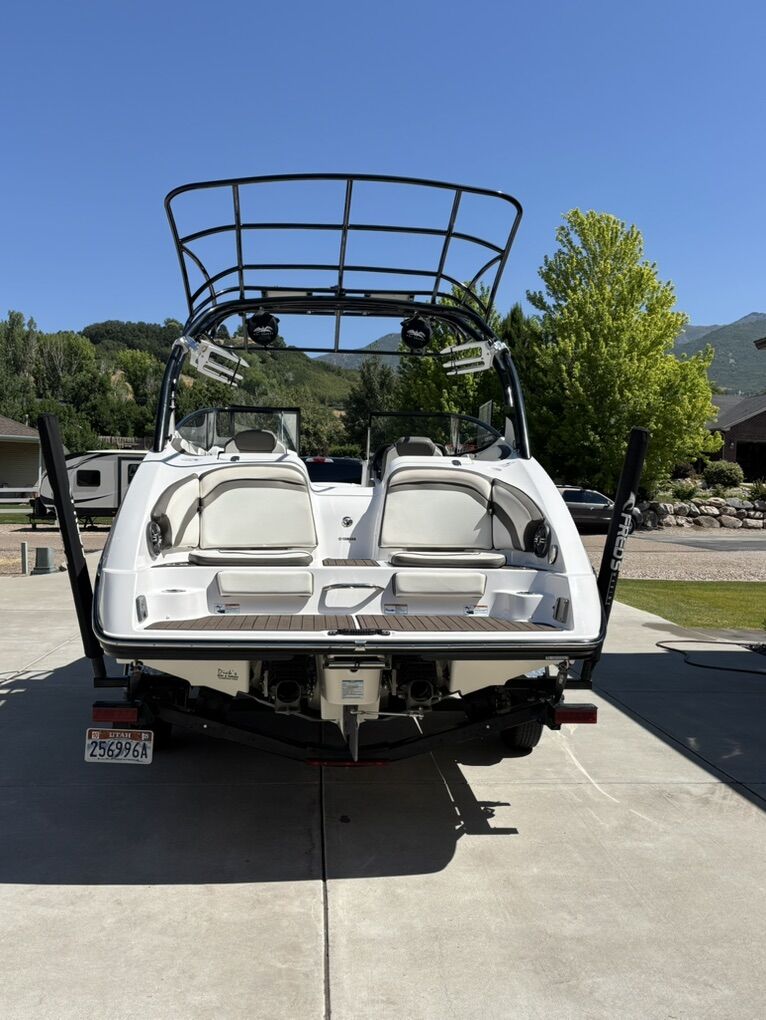 Very clean, well taken care of Yamaha jet drive boat. Has the duel jet drive engines. Super low hours, each engine has about 231.5 hours. No major wear and tear at all. Vinyl is in great condition, no tears or rips. Flooring is also in great condition. Exterior does have a few little flaws but nothing crazy, probably a 8 out of 10. Has newer batteries (2 years old), new cover (1 year old), new tires on the trailer including the spare (1 year old). The tires are a load range D, they are very good tires. Has the Wet Sound tower speakers along with upgraded interior speakers that are only 1 year old. I also have a custom storage cover for it as well. Has a big Bimini top that is in good condition and gives you tons of shade. Oil is changed and boat is winterized every year at Dicks Yamaha in Layton and this spring they replaced the spark plugs as well. This boat is ready to hit the water and runs amazing every time, it’s a very fun boat. I’ve never had any issues at all with this boat. I could also include some boating gear with it (ropes, surf boards, life jackets etc…) depending on purchase price.