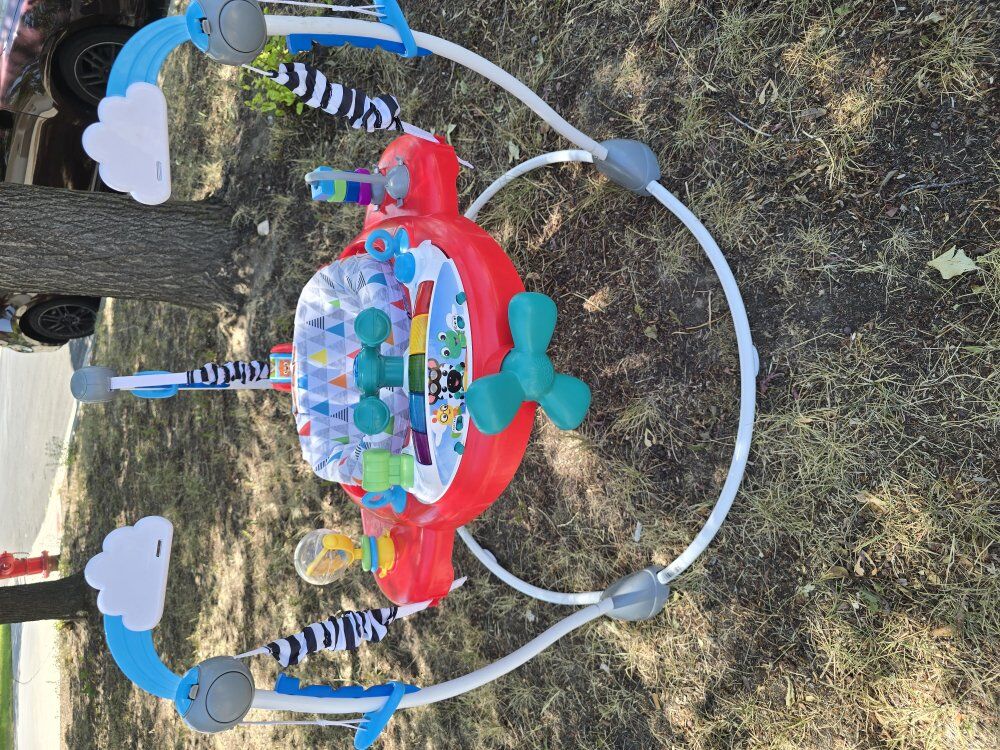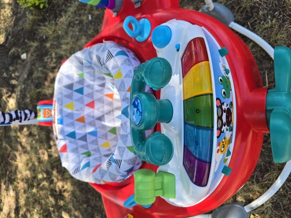Removable, electronic toy station features 2 ways to play: Jumper & Floor Play. 20+ melodies and sounds are activated by jumps, presses, throttles, and turns. baby used like twice he never liked it.