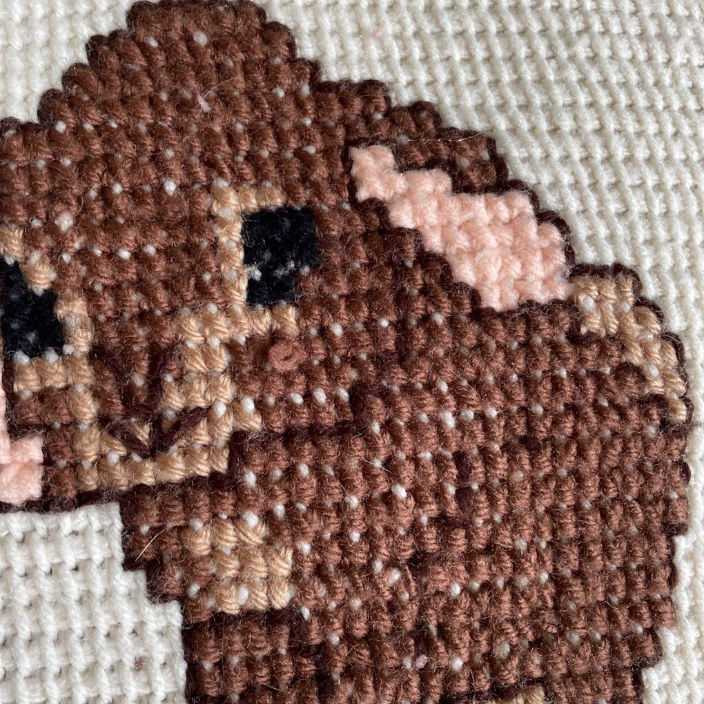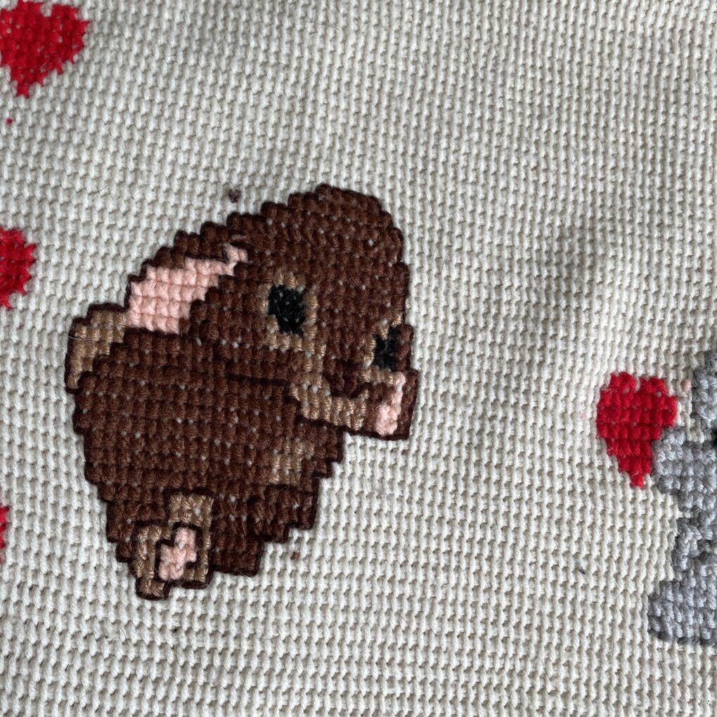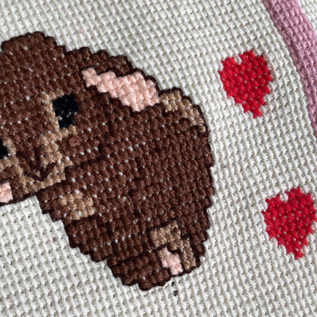VenmoAfghan Blanket Throw Hand Crochet Mauve&cream bunnies hearts vintage 33”x49”