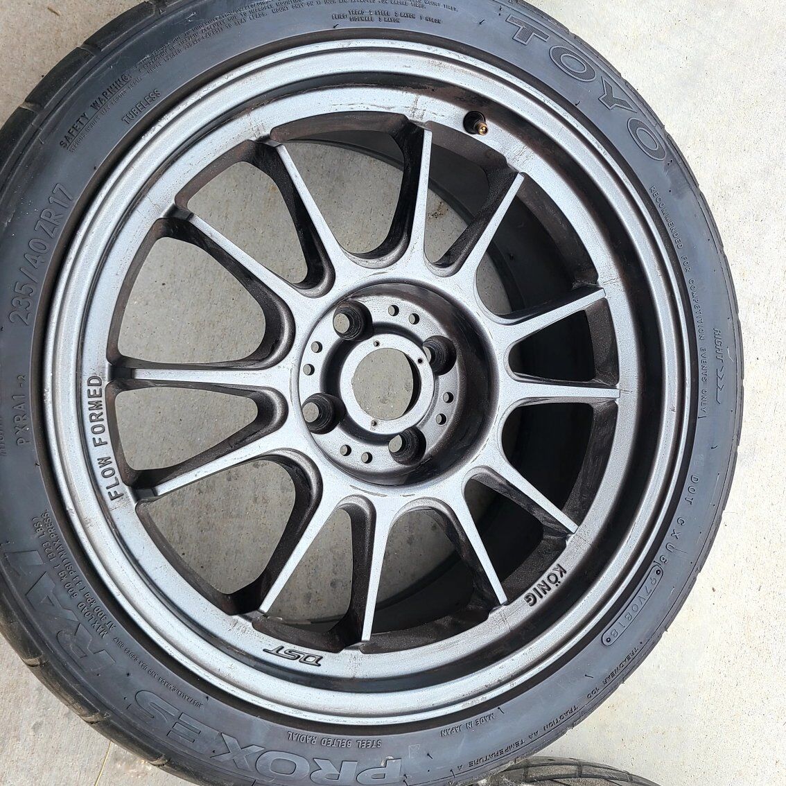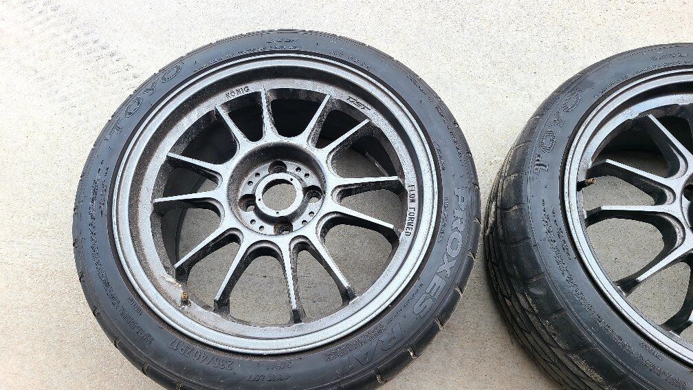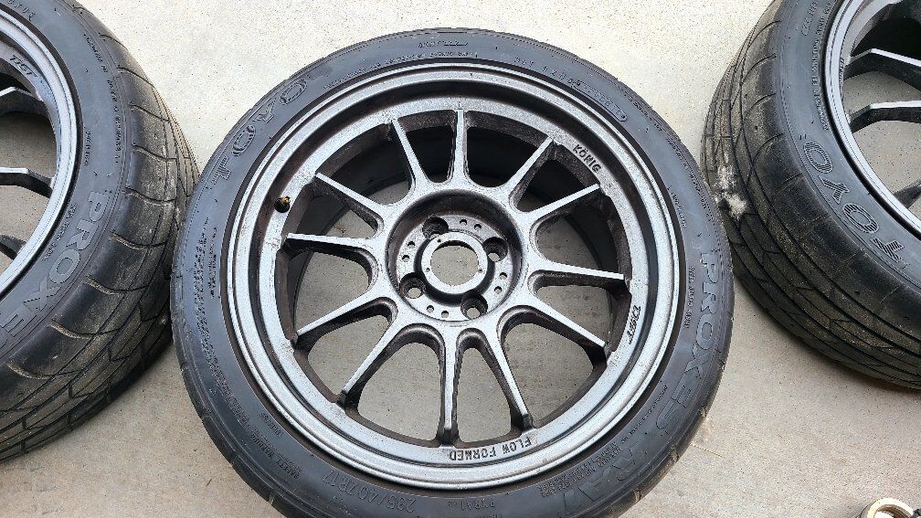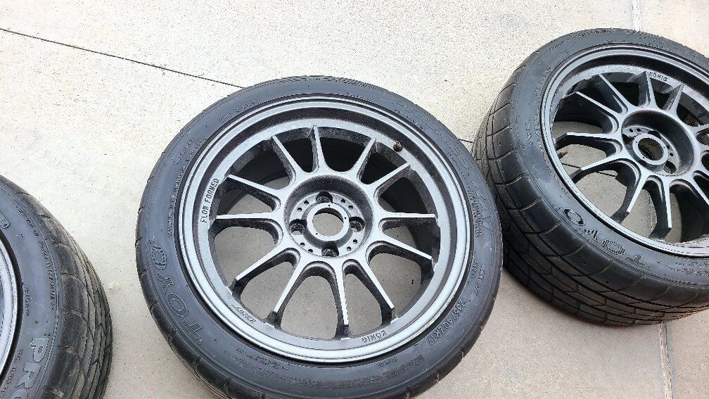 Great set up for autocross or track. wheels have some rash, not terrible. tires have a more laps in them. lug pattern 4x100. fits miata maybe others. 235/40/17