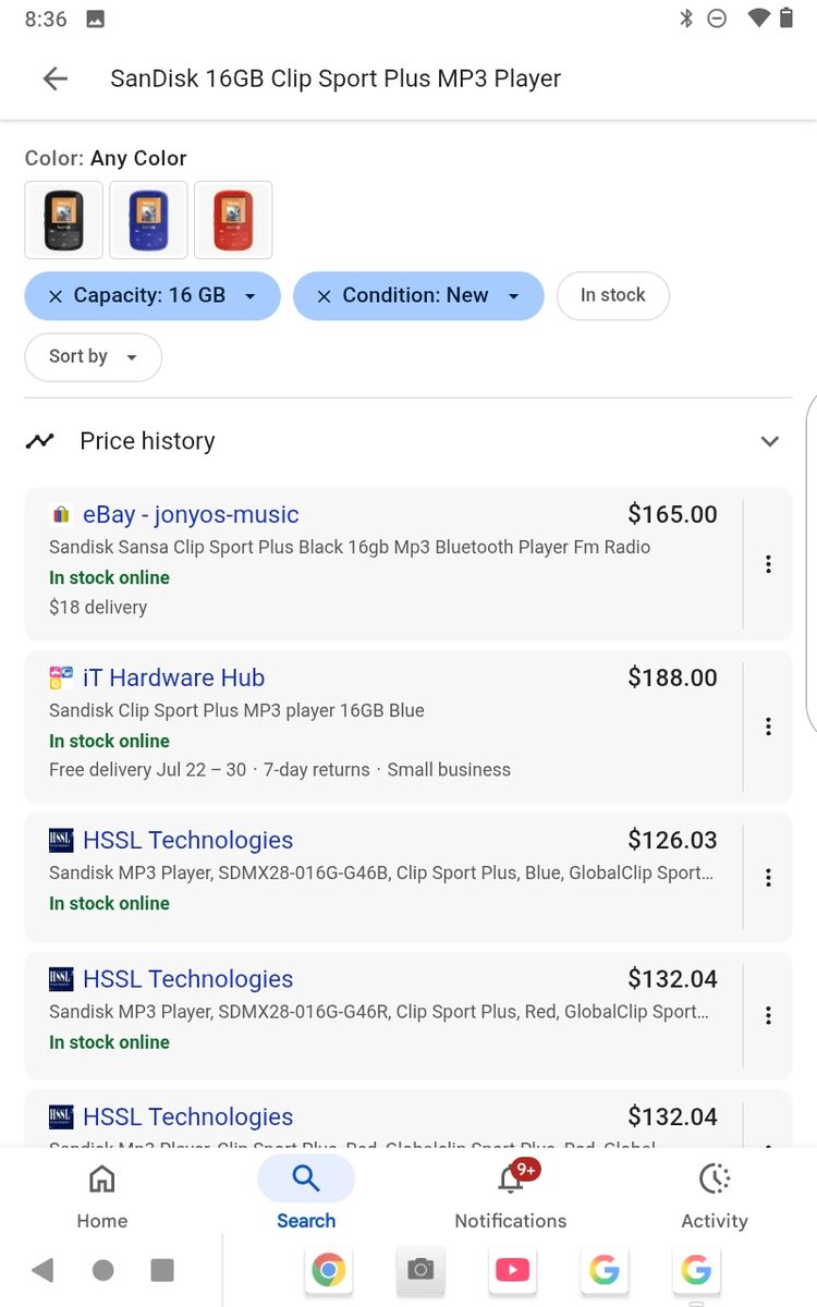 Lightweight SanDisk Clip Sport Plus MP3 player gives you the freedom and flexibility to work out the way you want. With its durable, water-resistant design, it's ready for a muddy mountain bike ride or a trail run in the rain. It also features Bluetooth wireless technology so it pairs with Bluetooth wireless technology headsets or speakers. A 16GB capacity means that it's big enough to store up to 4000 songs, but it also has a built-in FM radio. And it's small enough to clip to your clothes or gear, so you can stop worrying about your device and focus on your workout.