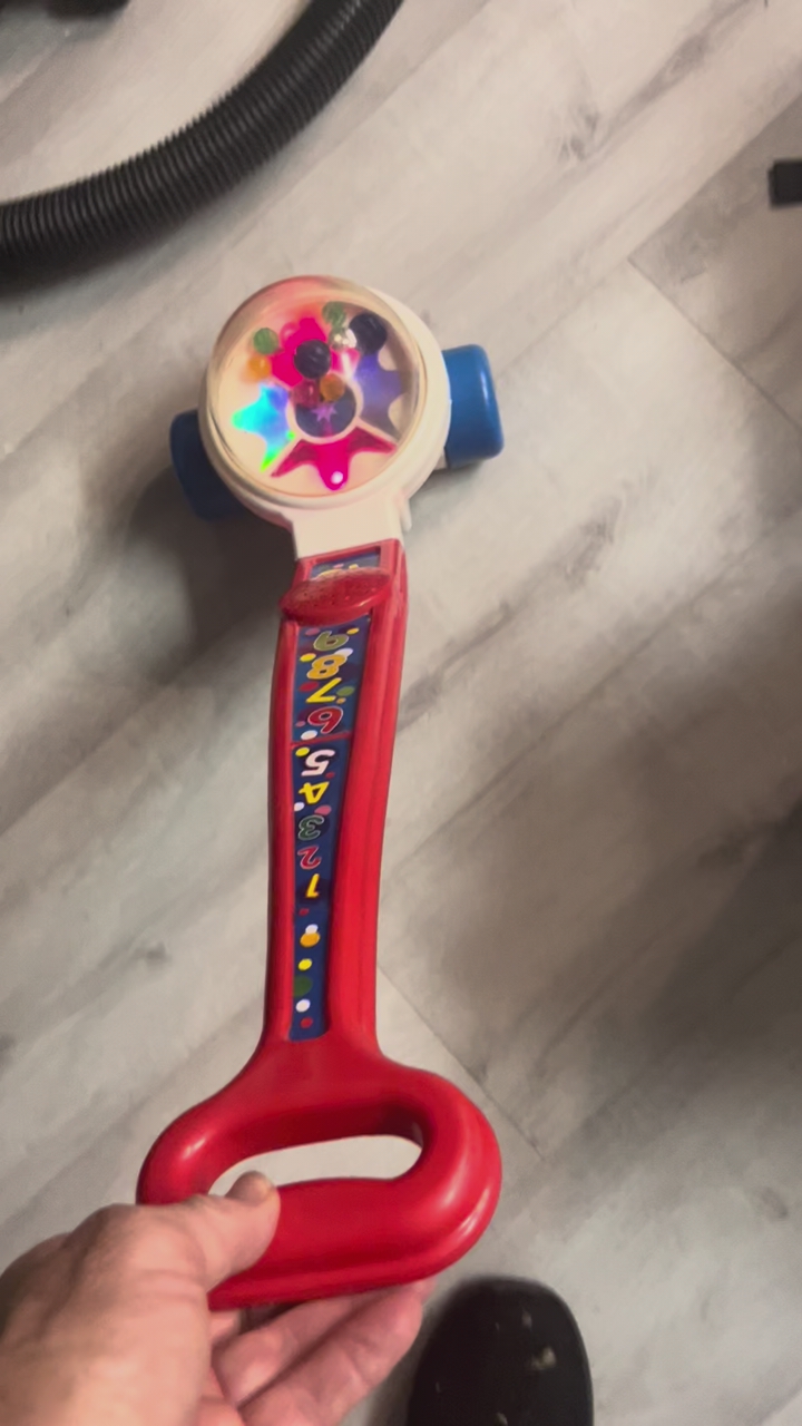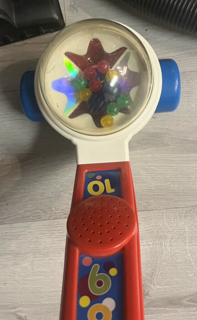 VenmoIn really good shape counting fisher price counting popper push toy. It encourages walking and helps little ones learn numbers and counting skills. Plays sounds and lights up and counts.