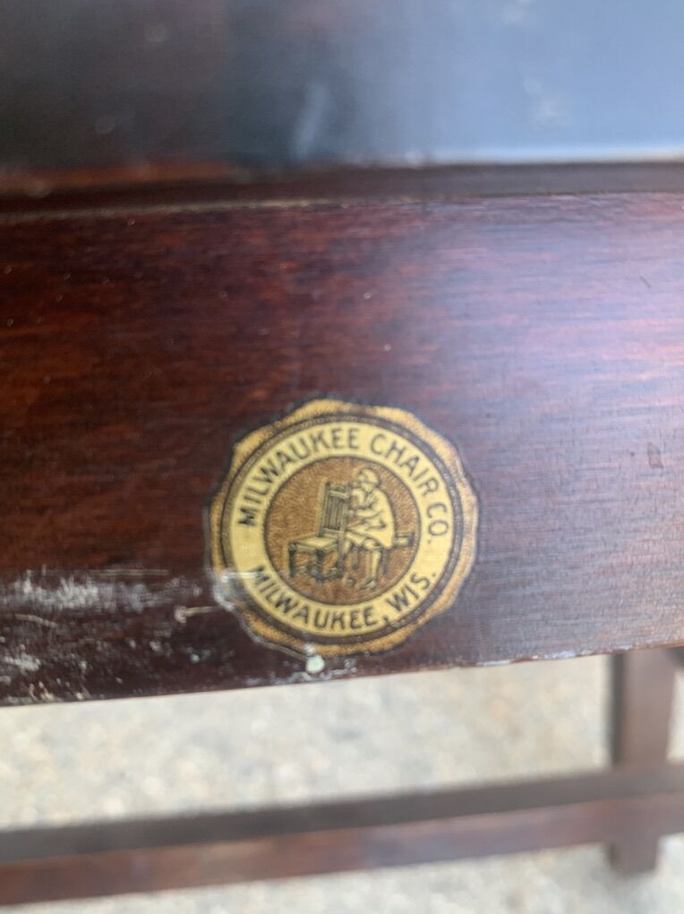 This chair is in great shape for its age. Milwaukee chair Co. was a high end manufacturing company back in the day and this chair is the upmost example of quality furniture. Made in 1925.