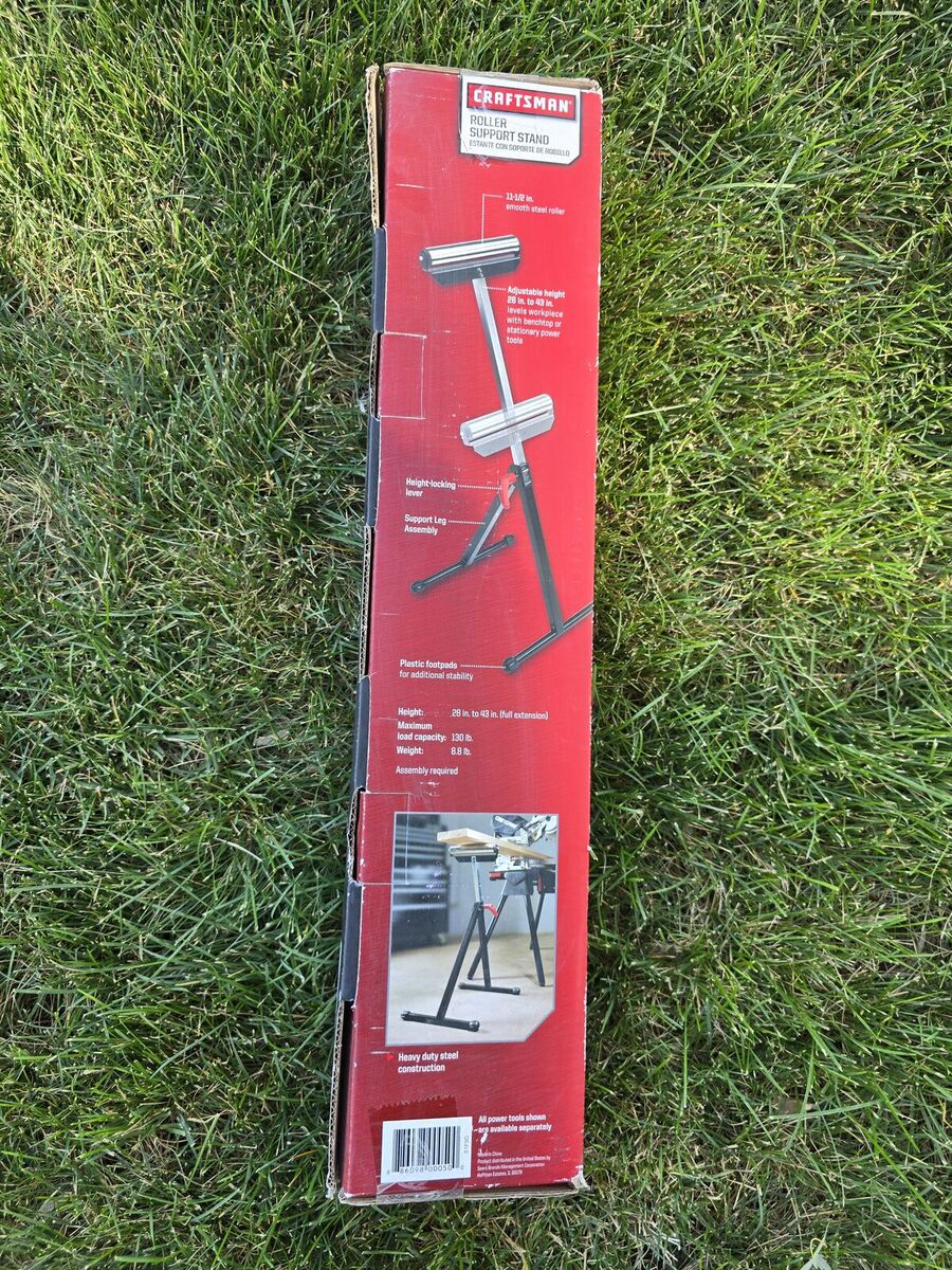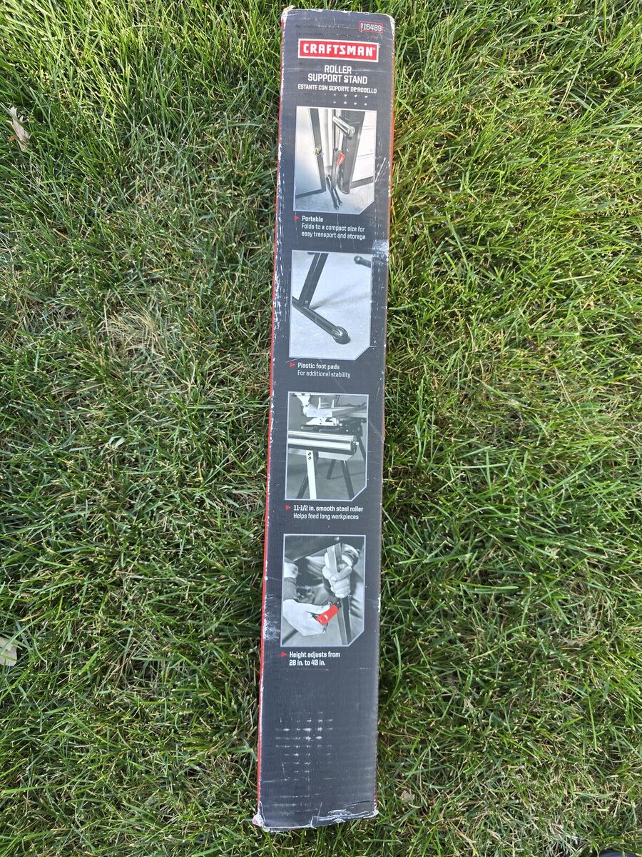 Adjustable height 28 -43", levels work piece with bench top or stationary power tools, portable, 11-1/2" smooth steel rollers, heavy duty construction.