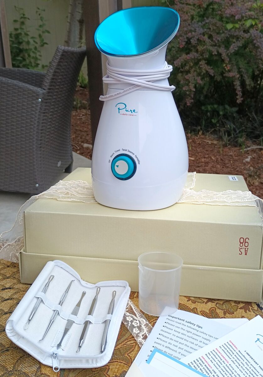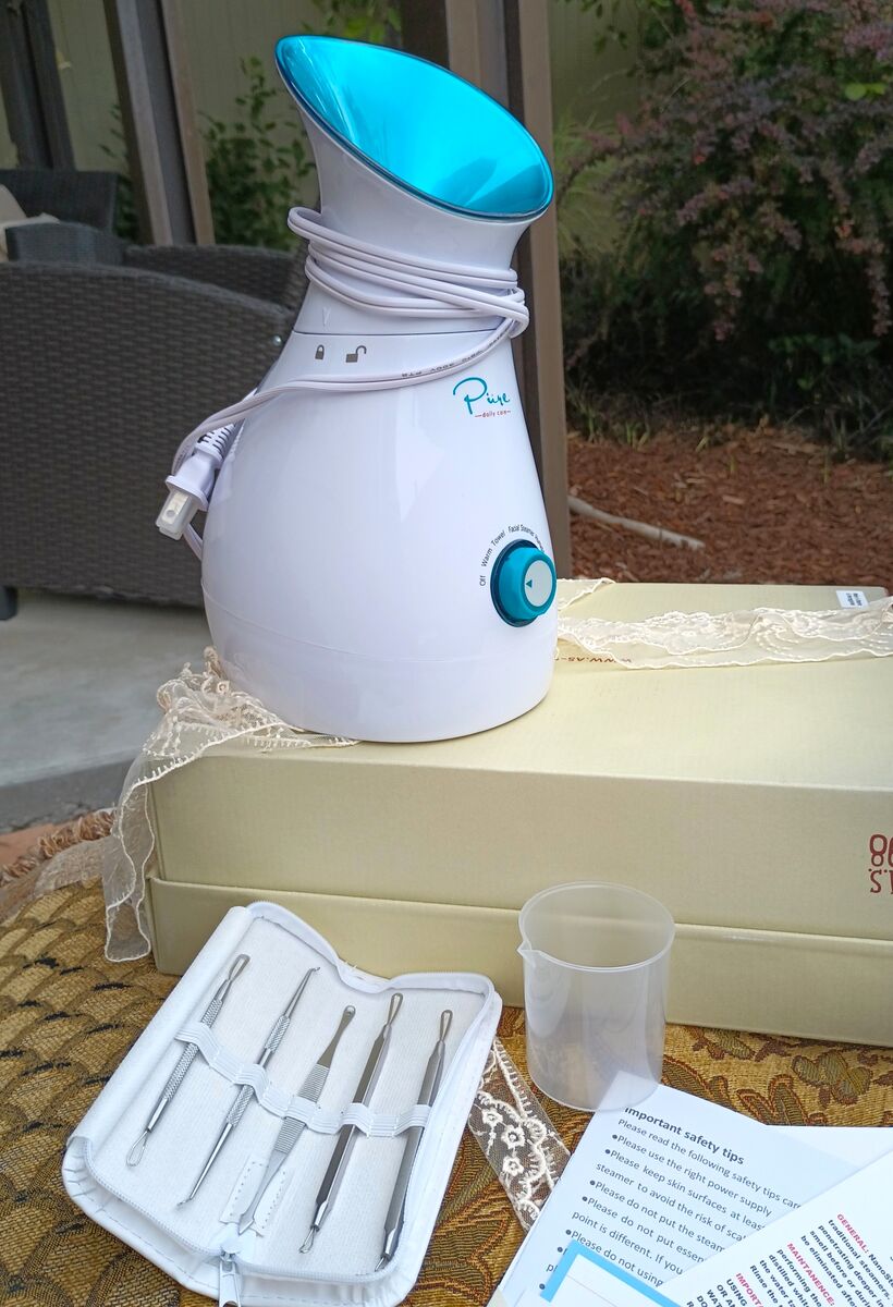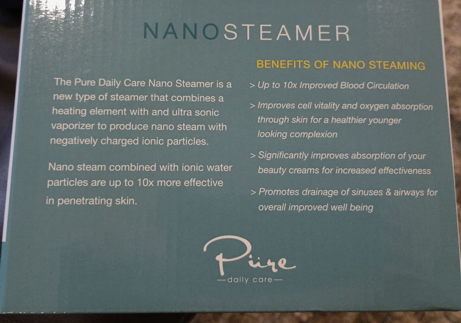 3 in 1 nanosteamer ionic facial steamer/towel warmer/room humidifier with complimentary stainless steel tool kit. Nano steam combined with ionic water particles are up to 10x more effective in penetrating skin, promotes even, healthy looking skin, prevents clogged pores, promotes micro-circulation. New in box. Orig. $65 selling for $45.