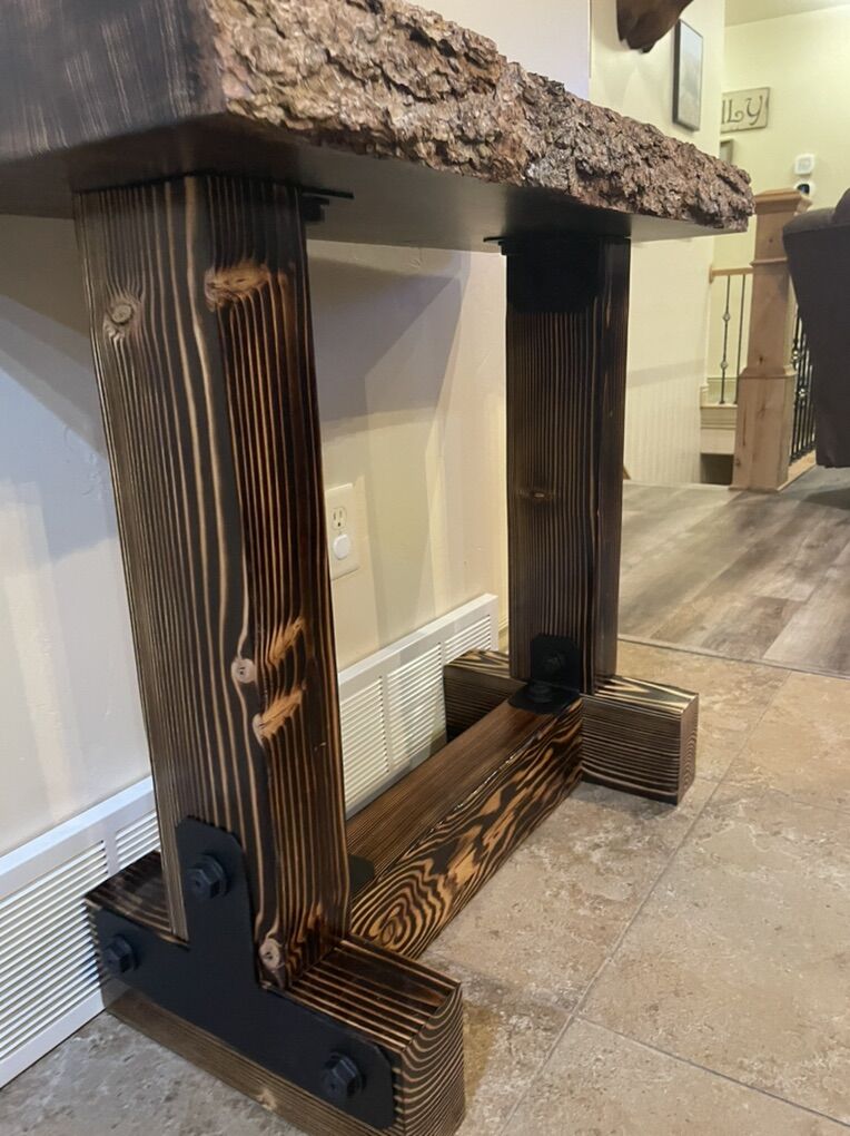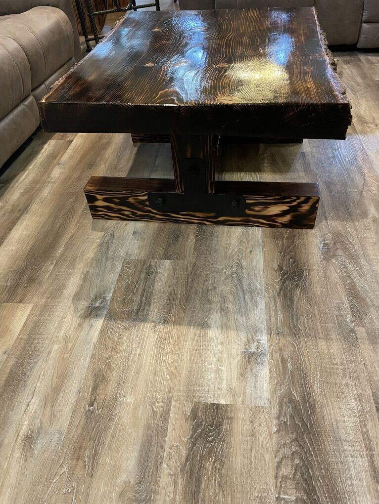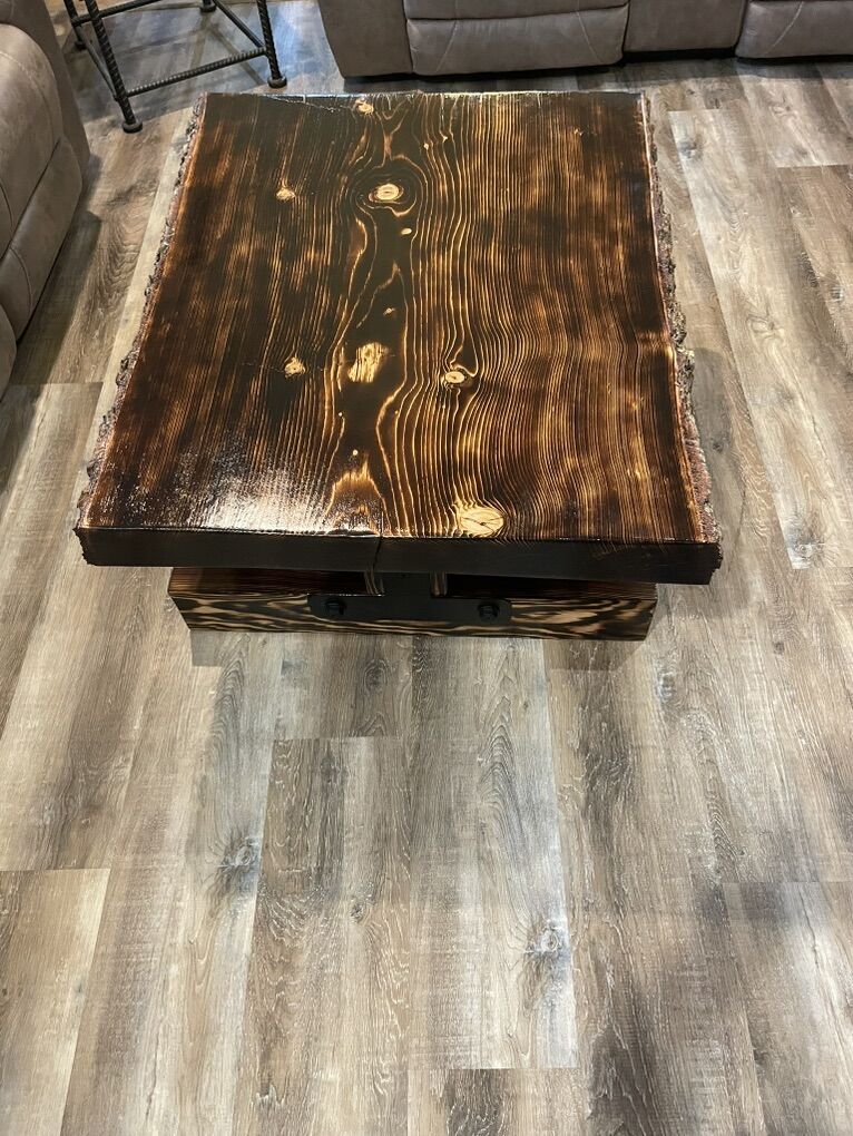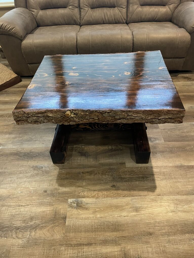 VenmoCustom made rustic live edge tables.These are hand made wood burned pine slabs.