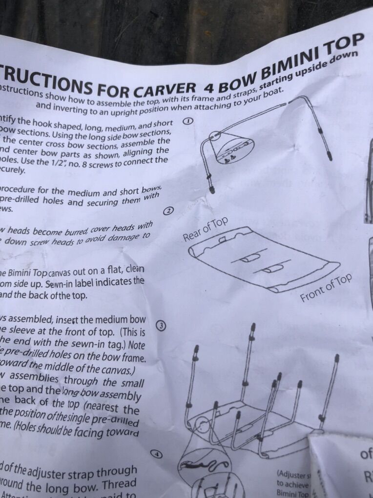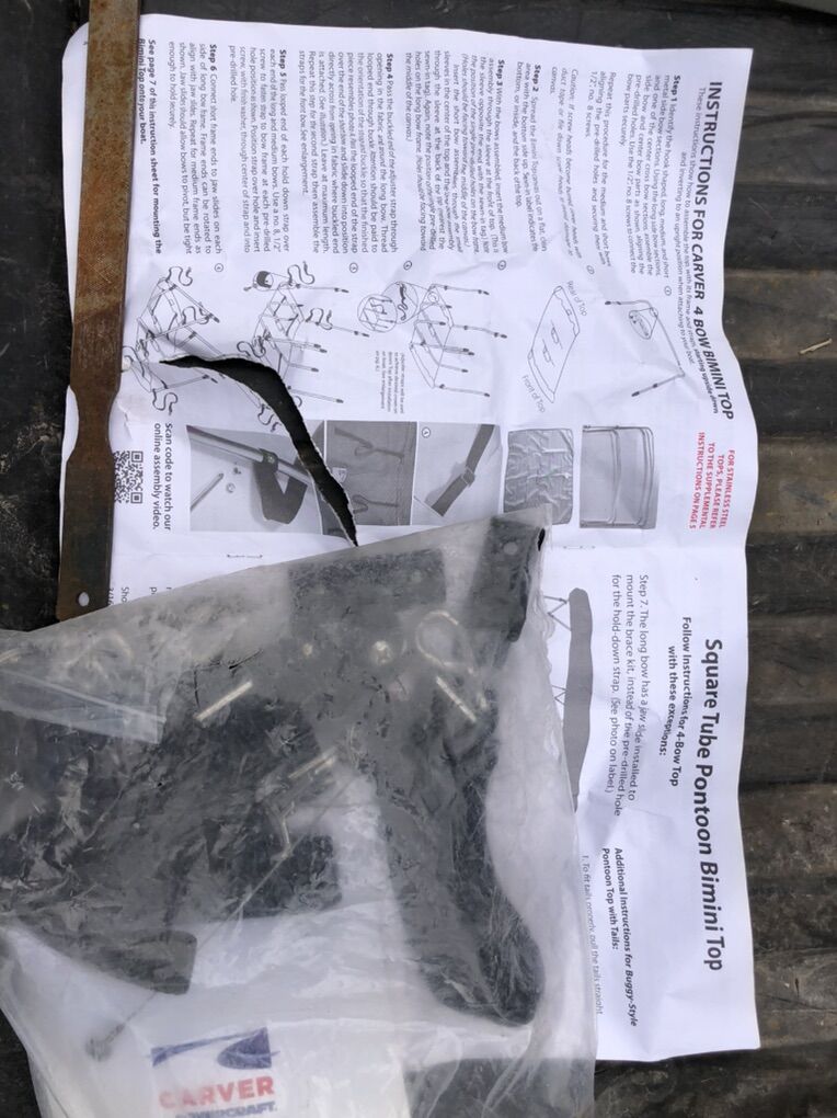 VenmoCarver boat 4 bow Bimini top For pontoon boat new frame only. See pics for sizes. Fit 8 foot beam, boat freestanding, pontoon top to standard. No soft top frame only 1 inch frame heavy duty.  boatcoversdirect.com. Has it listed as part number AFS4893UB or SFS4893UB. Those are with the whole kit again this is the frame only cat.