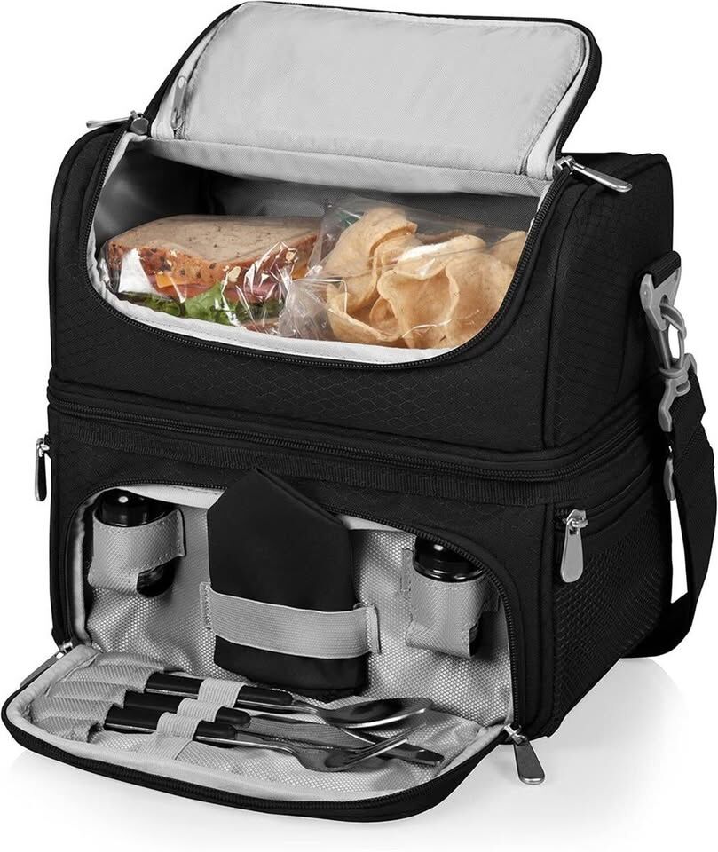 PayPalThe Harry Potter Quidditch Pranzo Lunch Tote is an all-in-one lunch box cooler featuring a durable polyester construction with isolated sections for hot and cold foods. It comes loaded with a stainless steel fork, knife and spoon, salt & pepper shakers. Insulated picnic/lunch cooler with service for one. Holds eight 12-oz. cans Separate sections (top and bottom) allow you to isolate your foods by temperature requirements. A zippered mesh pocket on each side provide extra storage.