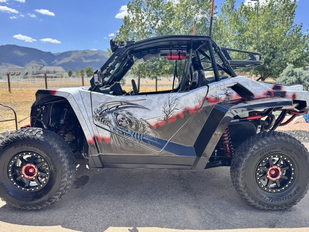 The 2018 Textron Has Gx Bead lock rims & over sized 32”BF Goodrich tires for multi purpose. Adjustable rear Fox shocks Full doors Powdered coated shock coils & hub caps Powder coated Front & real bumpers Air compressor under hood New custom wrap Exhaust system Duel Whips & flags Sector seven mirrors Light bar with six lights with switch in dash Custom grill Matching Spare tire with bed tie down bar Front & rear windshields ( front has a crack) Front windshield wiper manual. Custom cargo rack Antenna for push to talk Matching aftermarket Gas cap INSIDE Custom PRP Red two tone, heated Seats 1 child PRP seat Pro Armor harness Trax push to talk with head sets Air pumper system for 2 helmets with hoses. PRP Side and roof and bags Rear view mirror Assault racing steering wheel Fire extinguisher 1100 miles 4x4 & lockers