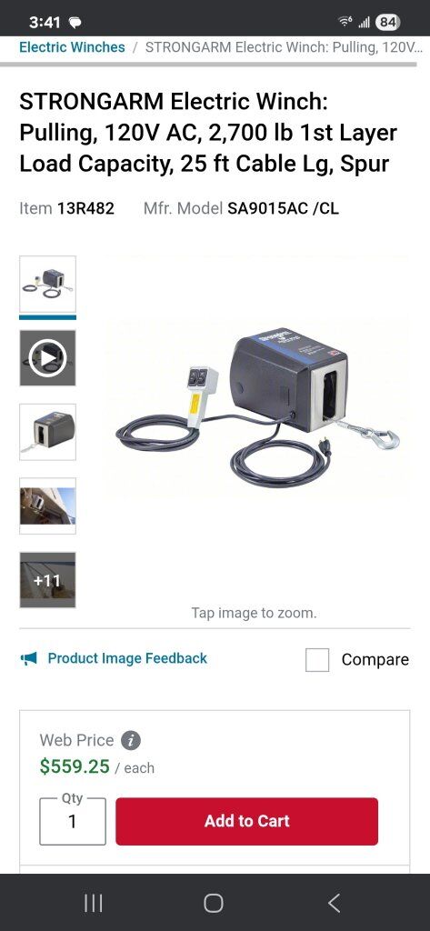Strongarm electric winch 120V AC 8 AMP $325 Please contact Mario @ 801-710-1289 with any questions or interest.
