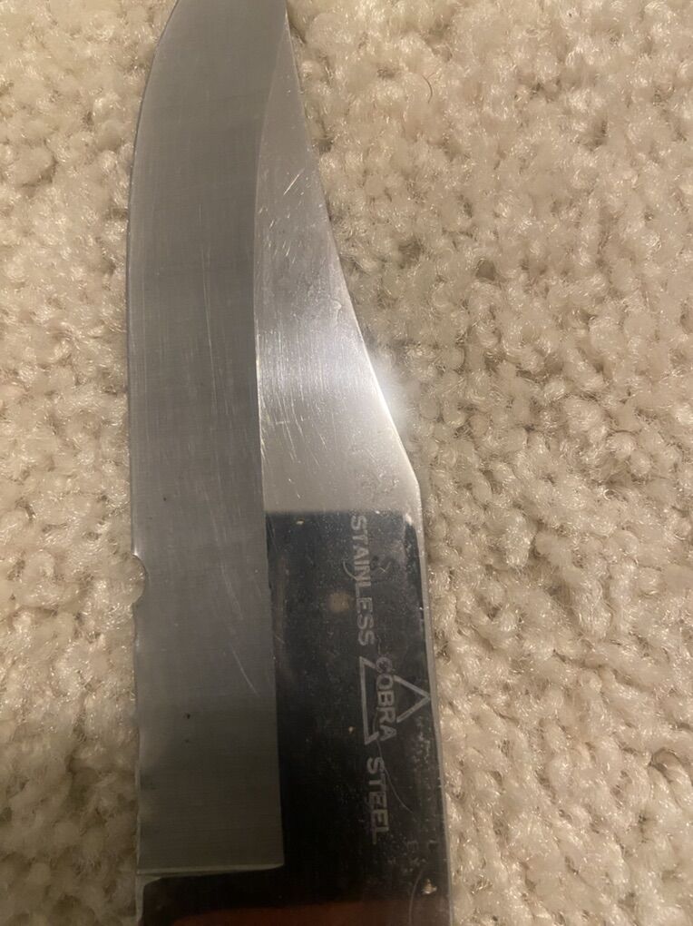 VenmoUsed – Excellent Blade is sharp with no rust. Handle is solid with no cracks. Full tang construction ensures durability. Great for hunting, camping, or survival. Some scratches from use. ⸻ Item Description: This listing features a high-quality Stainless Cobra Steel fixed blade knife made in Japan. Known for its sharp edge retention and strong corrosion resistance, this blade is perfect for outdoor enthusiasts, hunters, or collectors. The knife boasts a full tang design with a comfortable, ergonomic handle and a sleek stainless steel blade. The “Cobra Steel” name reflects the tough, flexible steel used in its manufacture, ideal for heavy-duty cutting, slicing, and survival tasks. ⸻ Features: • Blade Material: Stainless Cobra Steel (Japanese origin) • Blade Type: Fixed blade, full tang • Overall Length: Approx. 11 inches (blade ~6 inches) • Handle Material: Durable wood • Sheath: Brown leather included • Sharp, corrosion resistant, durable • Perfect for hunting, camping, survival, outdoor use