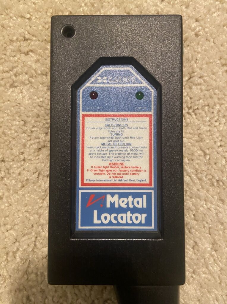 VenmoThis is a vintage handheld C.Scope metal locator, made in Ashford, Kent, England by C.Scope International Ltd. Known for their durable, high-performance detection equipment, C.Scope units like this were commonly used in fieldwork, construction, and hobby detecting during the late 20th century. This unit is in working condition, with responsive detection and audio/visual indicators functioning correctly. A great piece for tool collectors, metal detecting enthusiasts, or those looking for a reliable backup locator. ⸻ Features: • Brand: C.Scope International Ltd. • Origin: Ashford, Kent, England • Type: Handheld Metal Locator / Detector • Era: Likely late 1980s to early 2000s • Power Source: Standard battery (not included) • Audio tone + possible analog meter (if applicable) • Sensitivity adjustment knob • Approximate length: ~13–14 inches • Built-in detection probe • Lightweight and easy to carry
