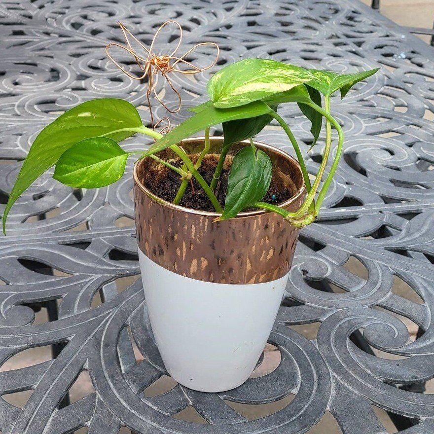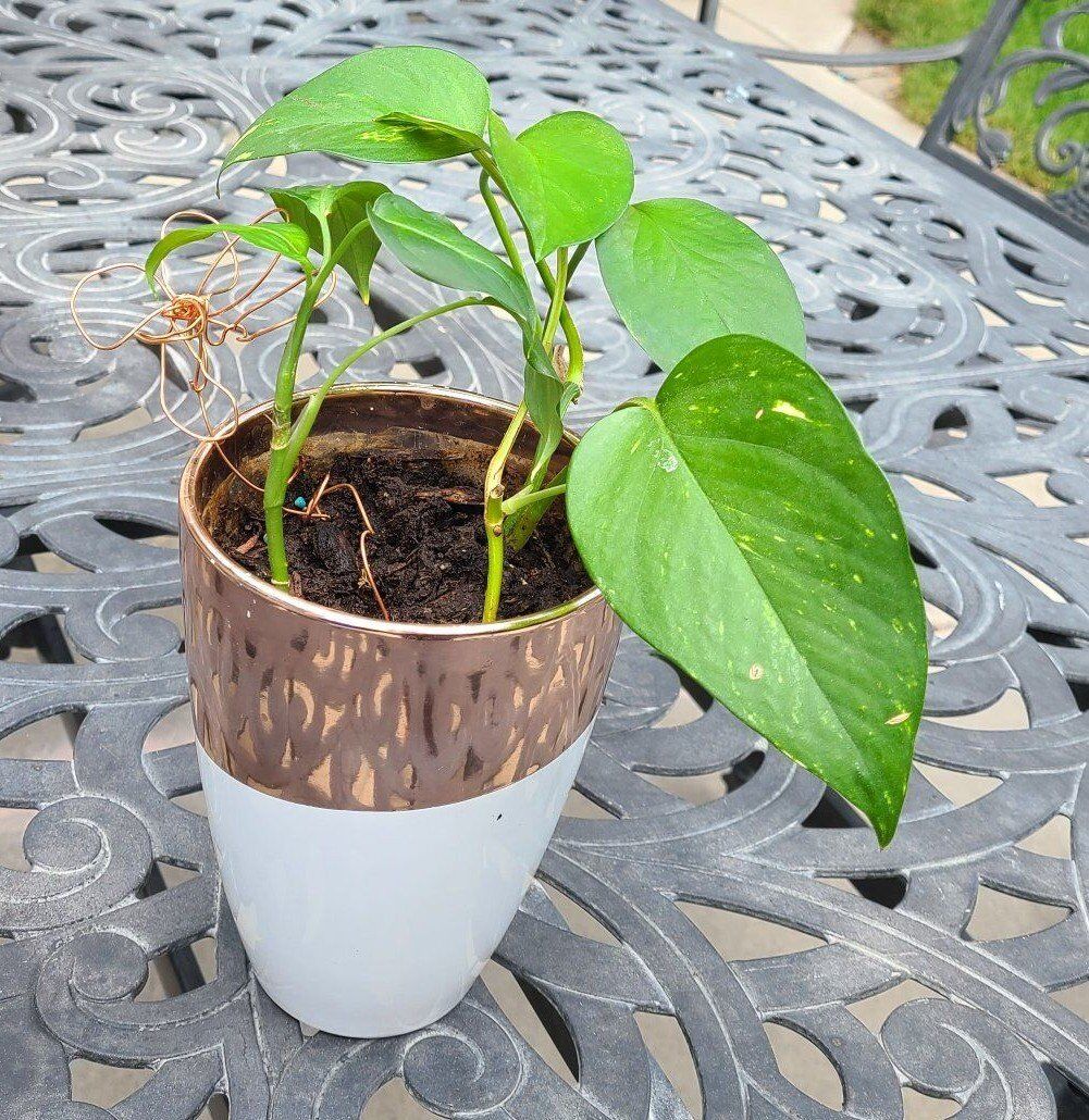 Living plant in a copper & white modern container.