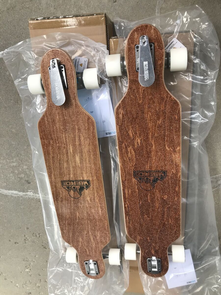 Vibe ride brake board longboard with foot activated disk brake attached