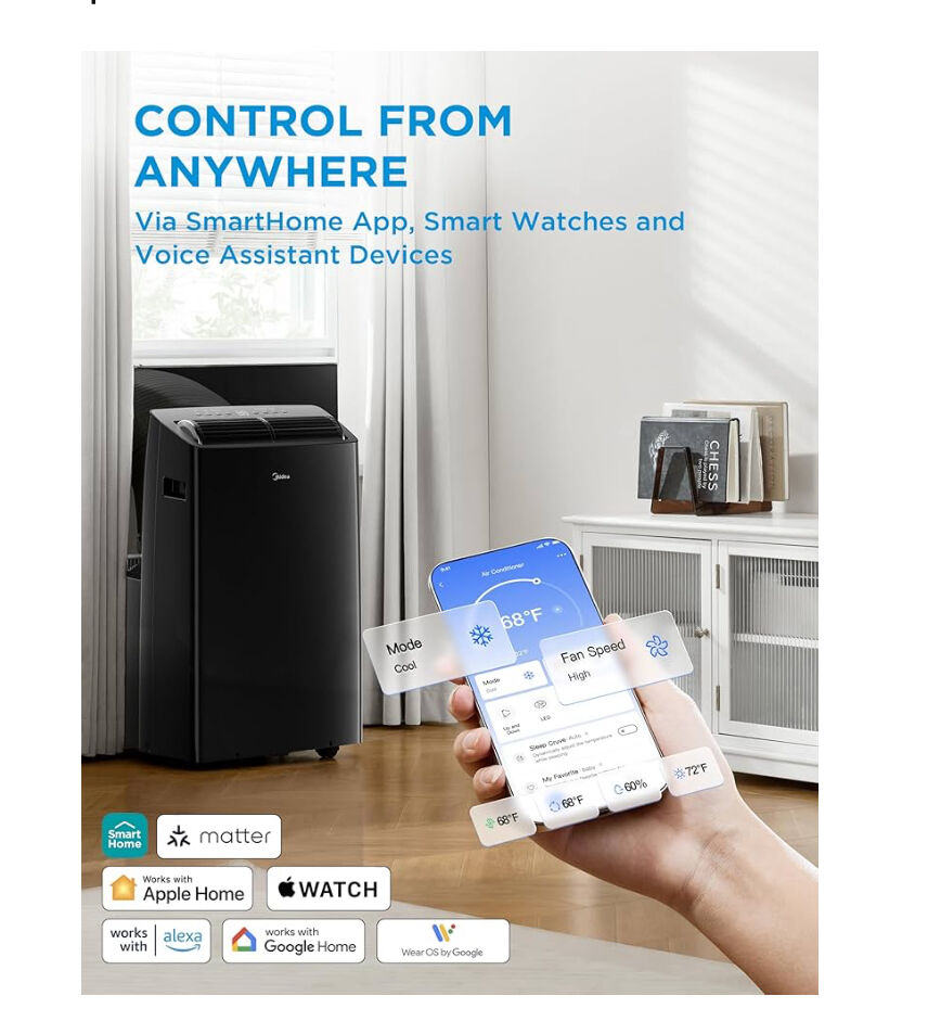 SMART WI-FI, WORKS WITH ALEXA/GOOGLE ASSISTANT - Wi-Fi module enables you to control from anywhere with the Midea Air smartphone app or by voice assistant with the Google Assistant and Alexa.