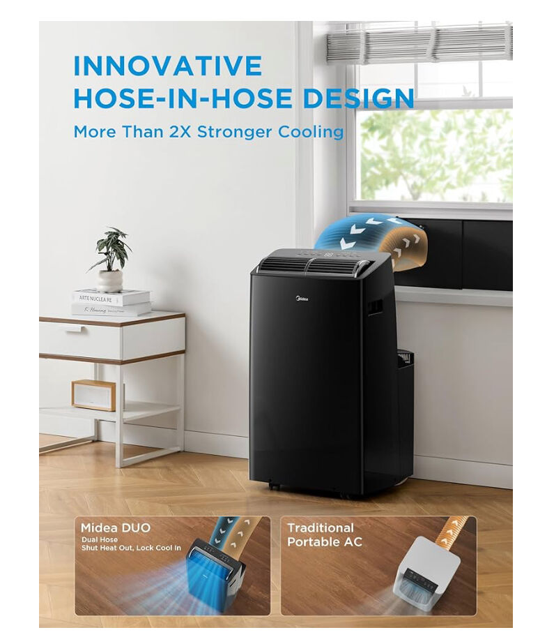 Midea Duo 12,000 BTU High Efficiency Inverter, Ultra Quiet Portable Air Conditioner, Cools up to 450 Sq. Ft., Compatible with Alexa/Google Assistant, Includes Remote