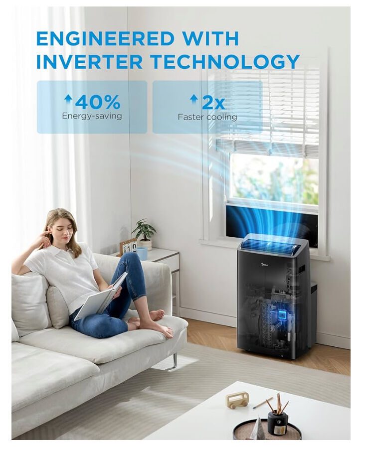 INVERTER TECHNOLOGY - Engineered with the variable-speed inverter technology, Midea Duo Inverter portable air conditioner cools more with considerably less electricity than traditional portable units. It saves more than 40% energy compared to U.S. federal standard.