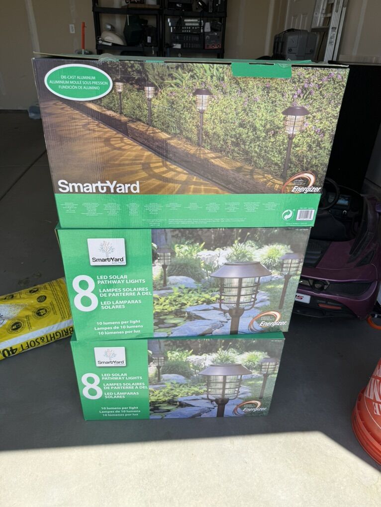 VenmoSmartYard 8 Pack LED Pathway Solar Lights set 8 with 24 total New.