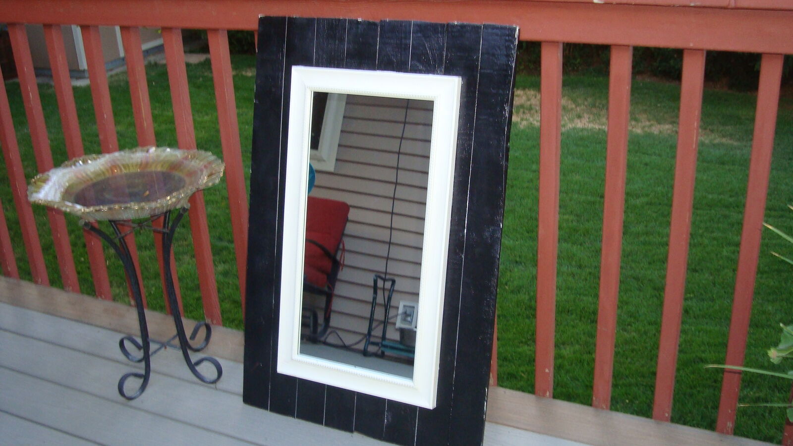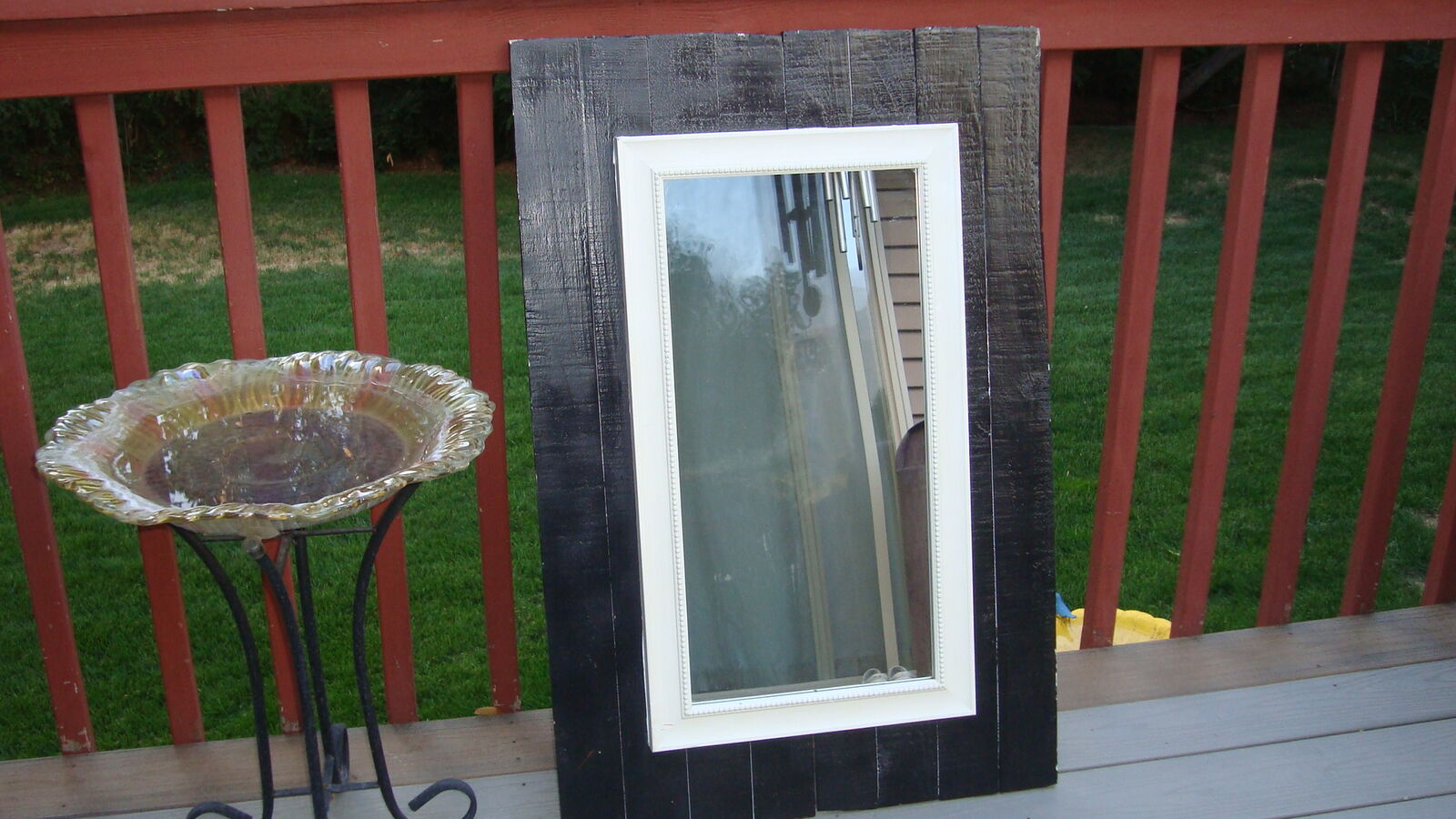 Nice mirror for decorating an apartment. This mirror is mounted on 1/2" panels of wood which makes it sturdy yet heavy. It's a very nice mirror with or without the wood and can be painted. size: Outside wood frame 3' x 2'. Mirror 27" x 15". I don't take Venmo.