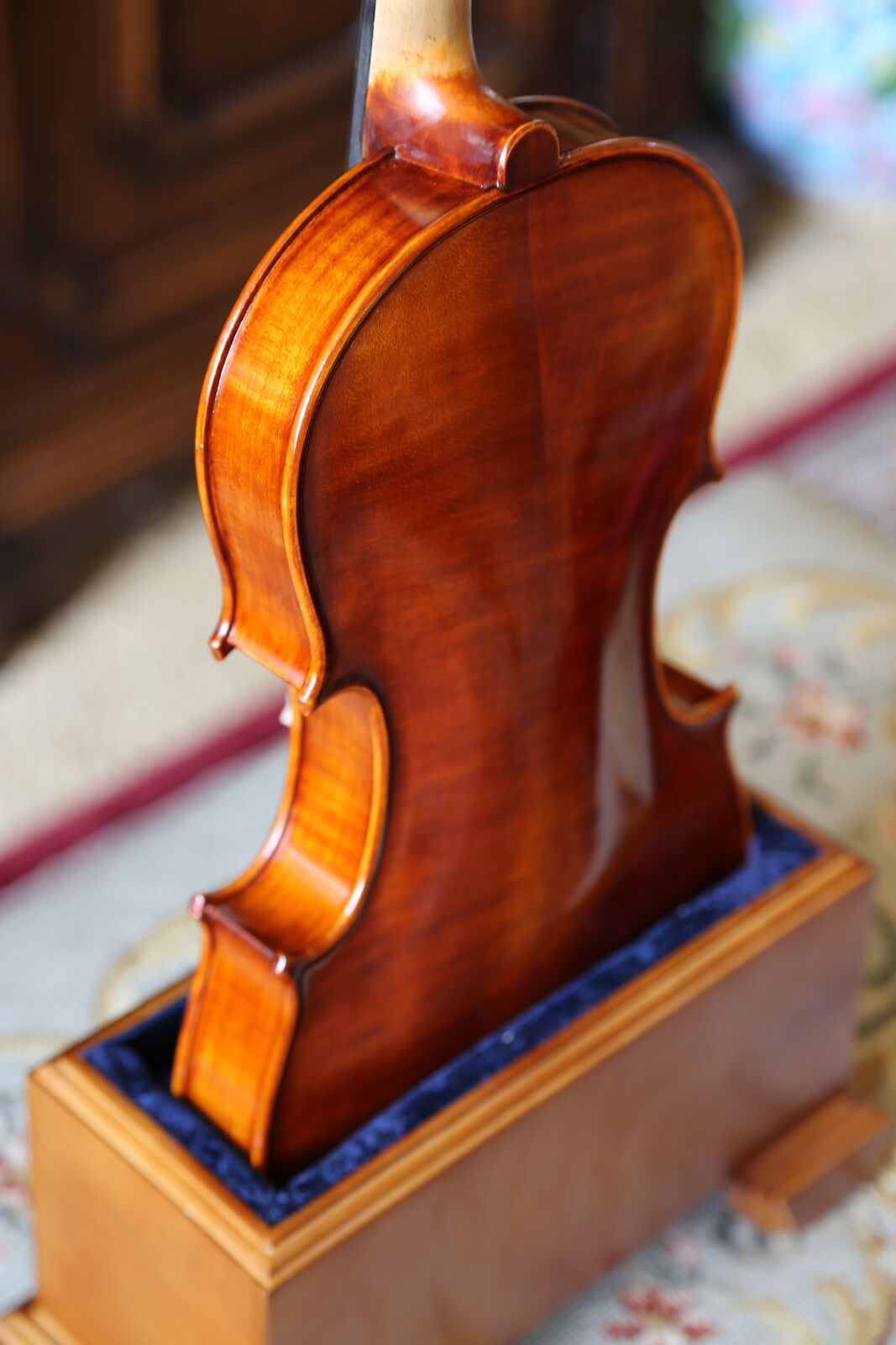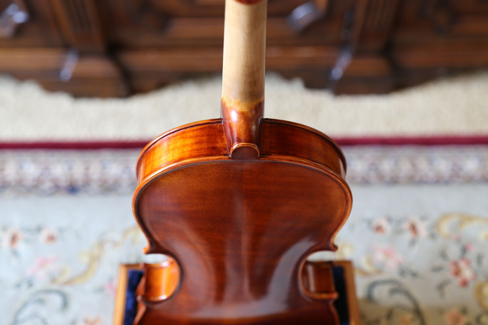 These instruments are a wonderful value for beginners. They are made from aged tone woods, spruce tops with maple back and sides, and are fully carved to specification. They feature a spirit varnish with darker golden brown antique shading, ebony inlaid purfling, and ebony fittings. Antique-style golden-brown spirit varnish Inlaid purfling Ebony fingerboard, ebony fittings Ebony tailpiece Available in sizes 4/4, 3/4, 1/2, 1/4, and 1/8