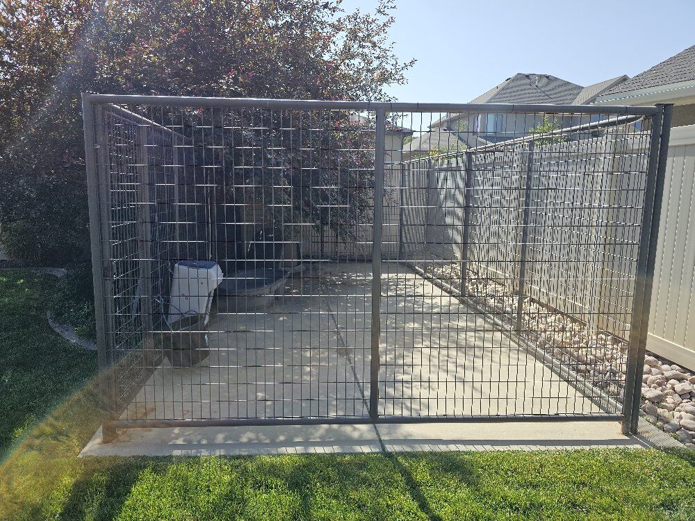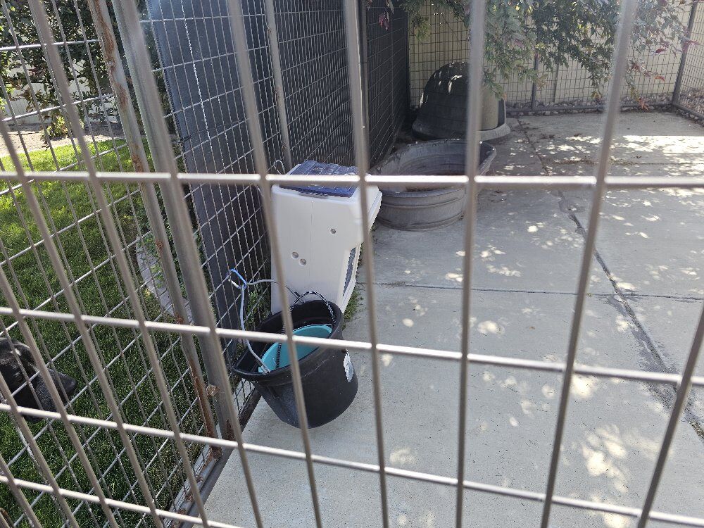 We purchased the Powder River dog kennel and it has been such a great kennel for our dogs. We no longer need it and would like to sell it all as a bundle. The panels are 6' x 10' with one panel that has a locking door built in. There are 6 panels total, including one with the door. The panels are all connected with both top and bottom lockers which are super easy to install/remove. The panels are powder coated but there is some wear/chipping/rust in a few places. The side shade screen (shown) is included and easily installed with zip ties. There is a dog feeder that attaches to a panel side and is easy for your dog to access their food as it is not on the ground. We have a heavy duty rubber water bucket that can be attached off of the ground onto a panel side. There is an extra large water pool for your dog to cool off in or drink from. The dog igloo is large enough for two 50 pound dogs to sleep in. It has a plastic flap covering the entrance and is in great condition! A heater has been installed into the igloo and can be plugged in and used during the colder months. The temperature can be tracked from your phone. There is some rust on the entry gate. Please text me with any questions. Local pick-up and cash only. Thank you!!