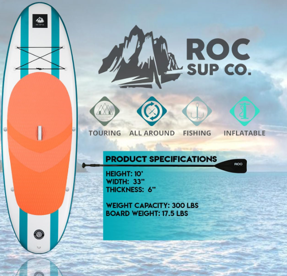 ZelleWide and Lightweight Stand-Up Paddleboards: This Inflatable Stand Up Paddle Board measures 10' long 30" wide and 6" thick for improved stability and balance while standing. Paddle Board is made of the highest quality military grade material. Providing the most durable lightweight SUP Paddle Boards on the market. Perfect for Leisure Stand-up Paddle Board, Touring Paddle Boarding, for you riding the waves or practice a Stand Up Paddle Board. Maximum load-bearing capacity is up to 350 lbs.