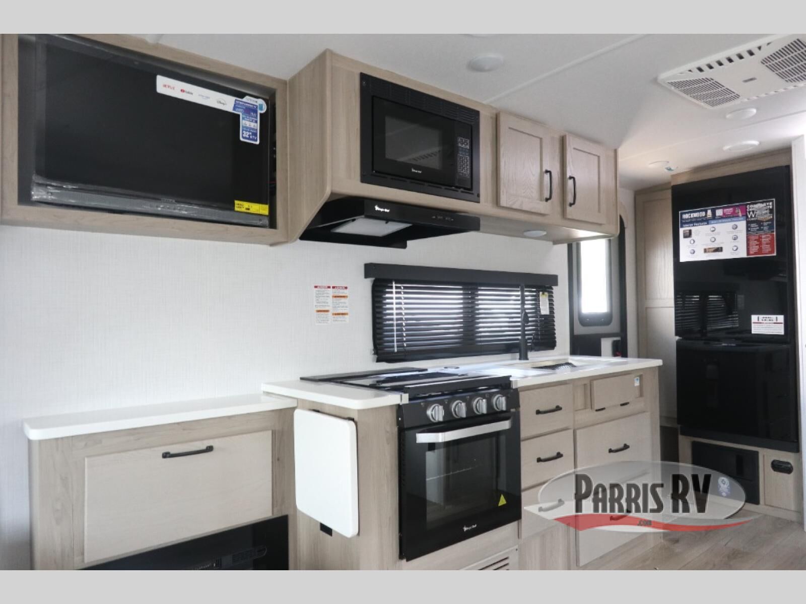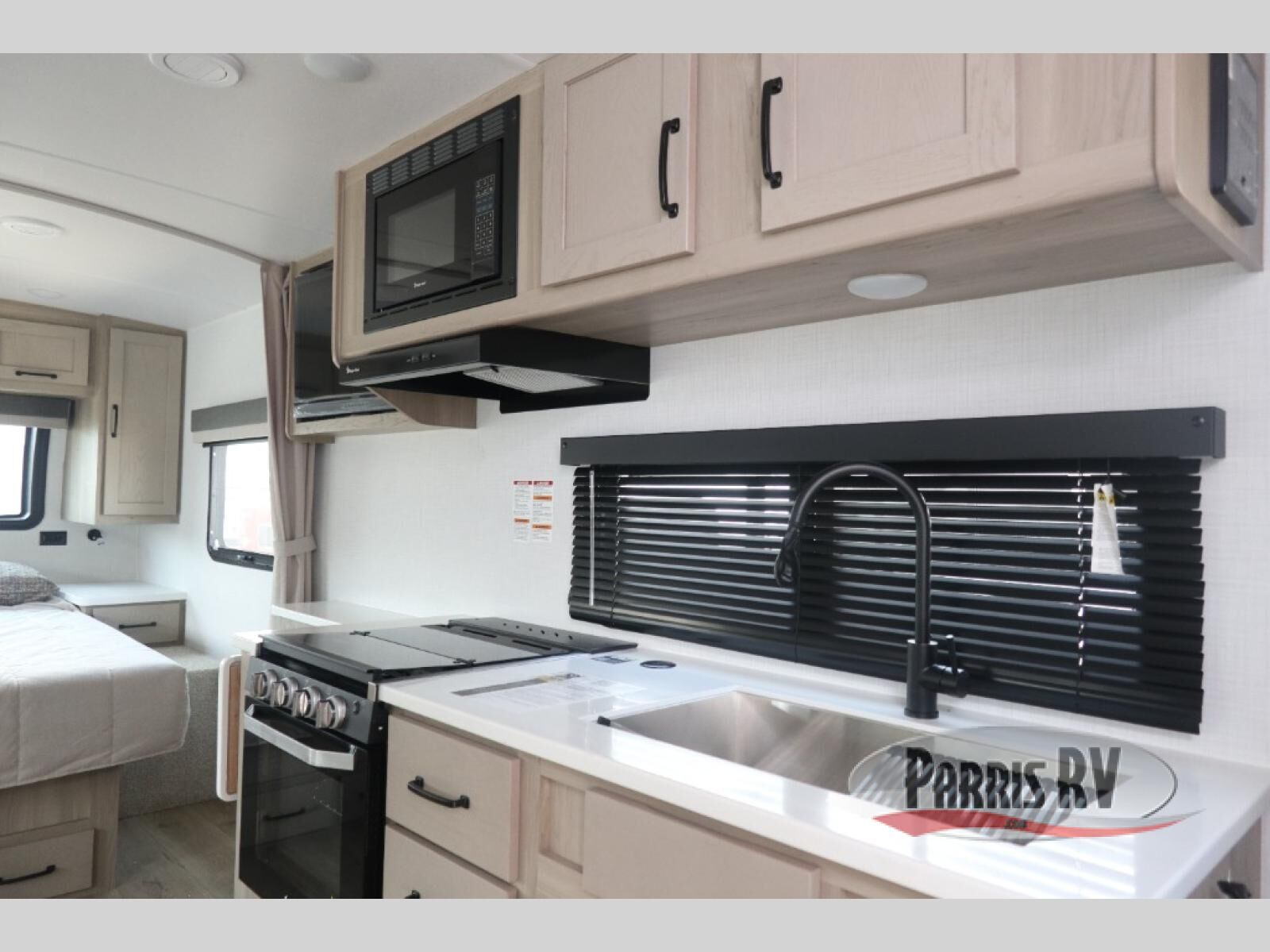 Each Rockwood Mini Lite travel trailer by Forest River is constructed with a fully laminated one-piece walkable roof, sleek frameless windows, and a six-sided full aluminum frame for strength and durability. The 12V thermostatically controlled heated tanks, plus radiant foil in the underbelly and slide out floors will allow you to camp well into the colder months, and the 200W roof solar panel will be perfect for a little off-gridding. Each model includes solid surface kitchen countertops, solid wood cabinet doors, night roller shades, plus many more interior features. Having an AIR 360+ omnidirectional antenna with WiFi prep on board gives you the option to get some work done if it's needed, and the power tongue jack provides hassle-free set up, so you can enjoy more time relaxing!