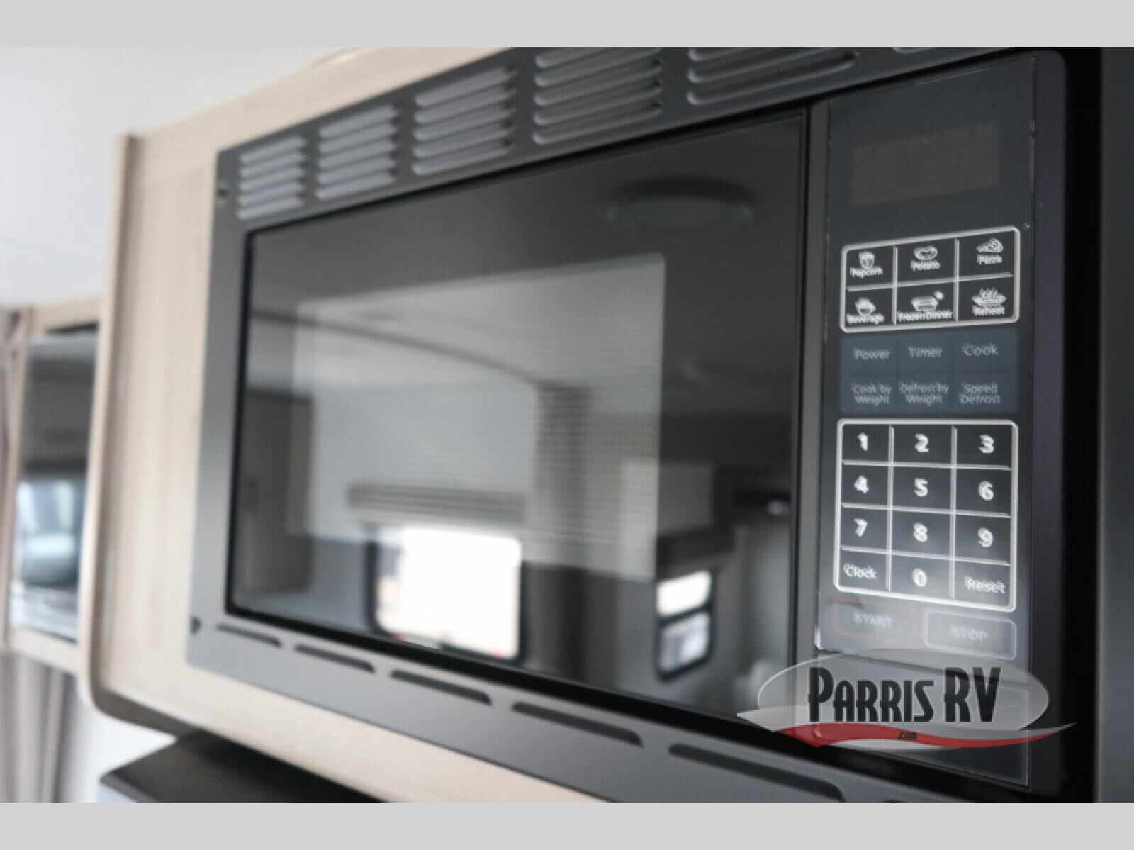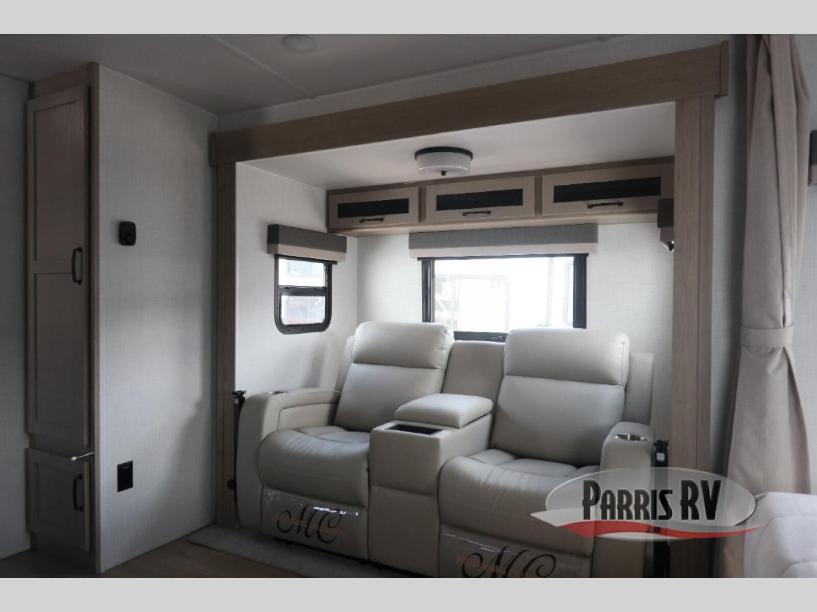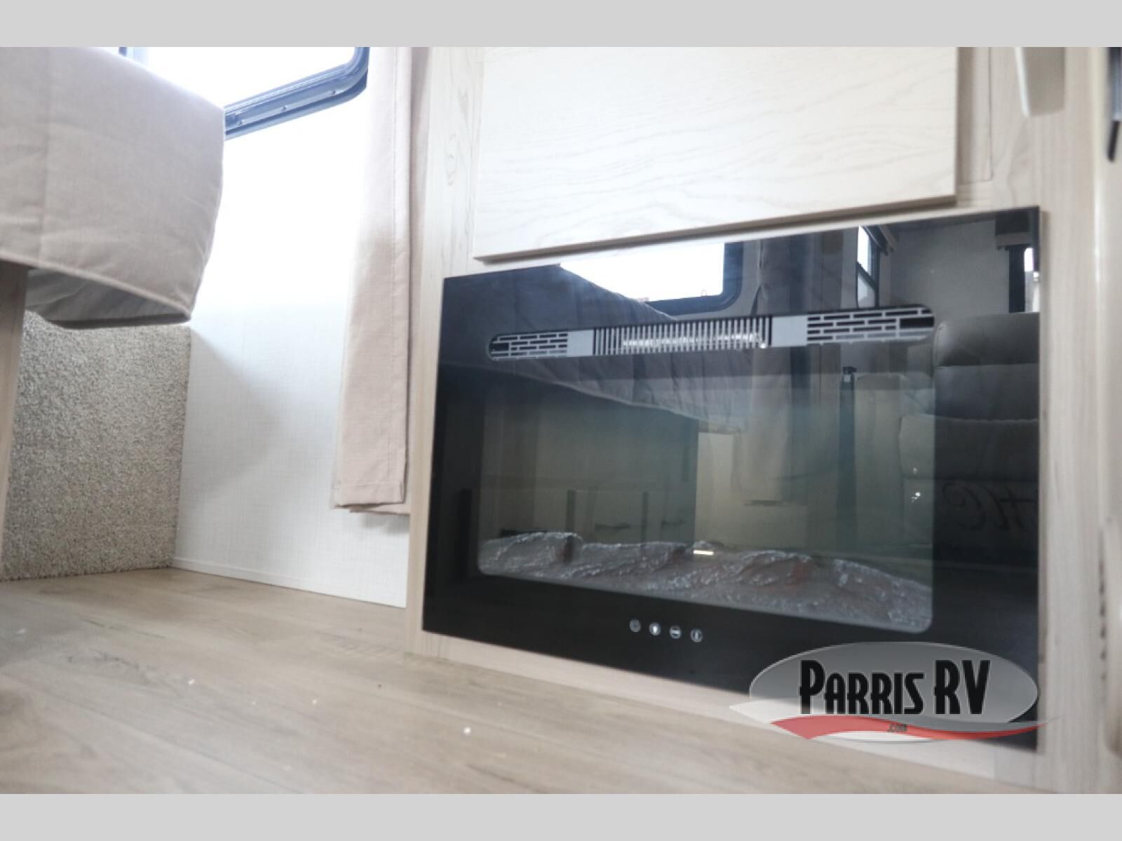 Enjoy the camping season with your spouse, friend, or significant other in this cozy travel trailer for two. Each morning, you can have your coffee on the 67" theater seats with a table within the slide out, then head outdoors to make pancakes on the outdoor griddle with an LP hookup. The interior kitchen includes a three burner cooktop, a microwave oven, plus a 12 volt refrigerator for perishables. An entertainment center with a fireplace will make your space feel more like home, and what's better than sleeping on your own queen bed with dual bedroom wardrobes for your clothes!?