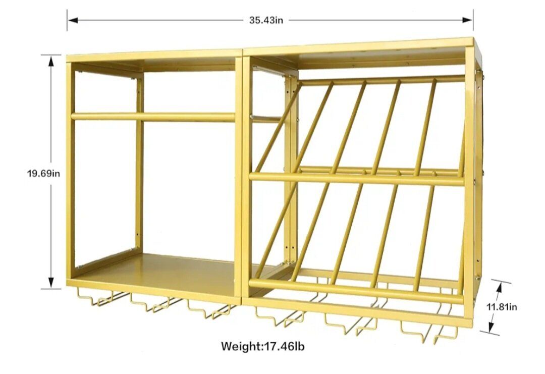 Wall Mounted Wine Rack - 20 Bottles Gold Wall Wine Rrack with 6 Glass Holder
