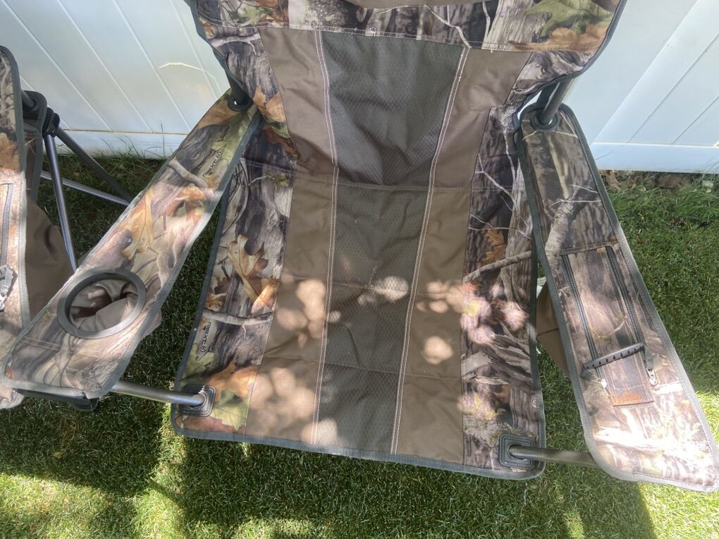 Venmo🪑 Product Features: • Size: 24” W x 20” D x 40” H – roomy, oversized comfort • Frame: Heavy-duty 19mm powder-coated steel for strength and weather resistance • Fabric: Tough 600D polyester for durability • Comfort: Cushioned padded seat and backrest • Cooler: Built-in insulated armrest cooler with zippered top • Portable: Includes carrying bag for easy storage and travel • Color: Rustic/hunting-style (see photos for actual design) ⸻ Available Buying Options: You can select either 1 chair or 2 chairs when checking out, depending on your needs. Quantity Price Per Chair Equivalent 1 Chair $54.99 $54.99 2 Chairs $99.99 $49.99 each - SAVE $10!