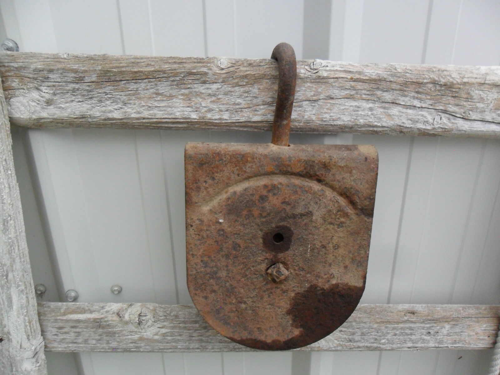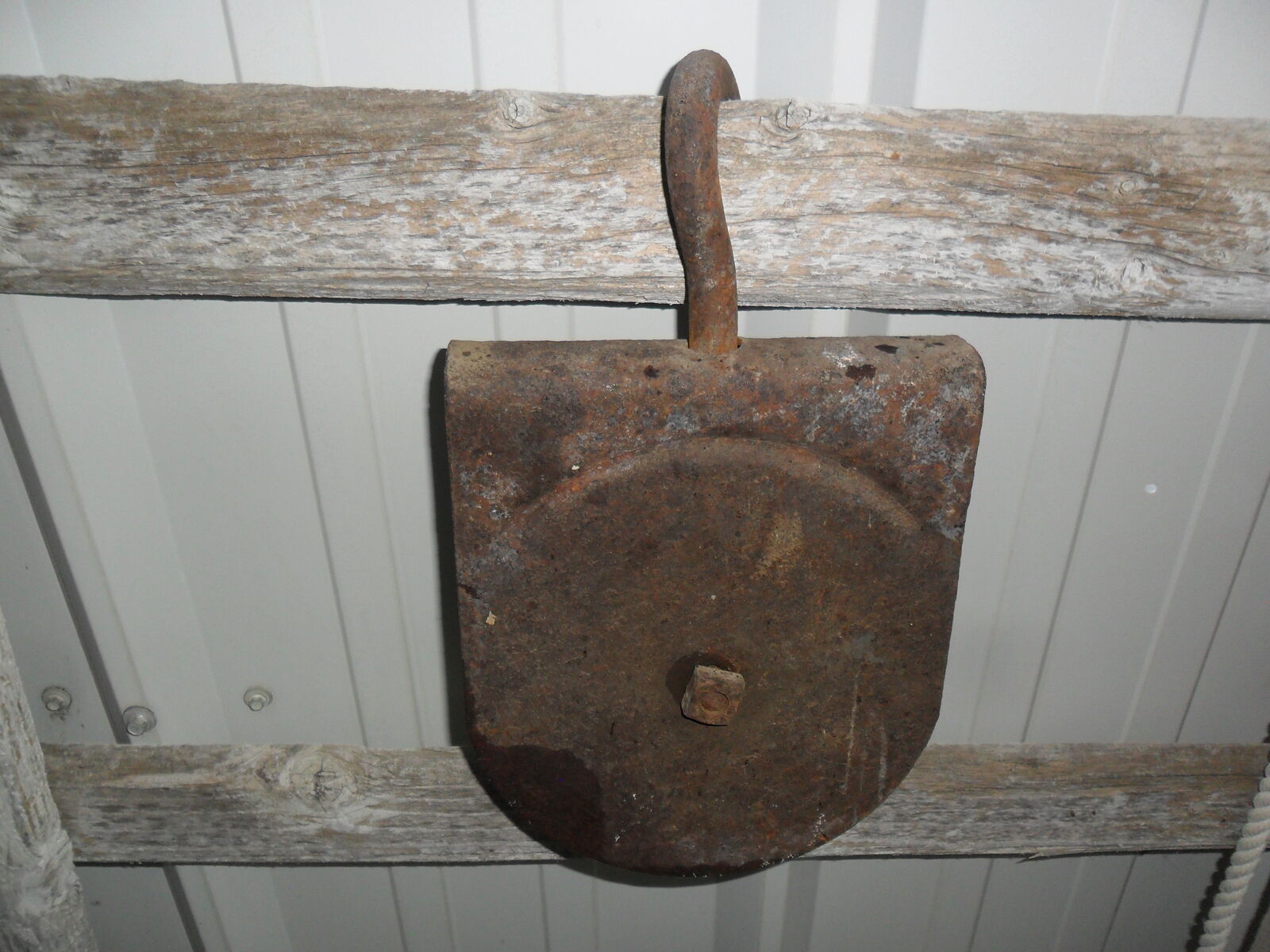 This old pulley is 7" wide and 12" long and in working order. A great piece of rustic or industrial decor. Offers considered. Thanks for looking.